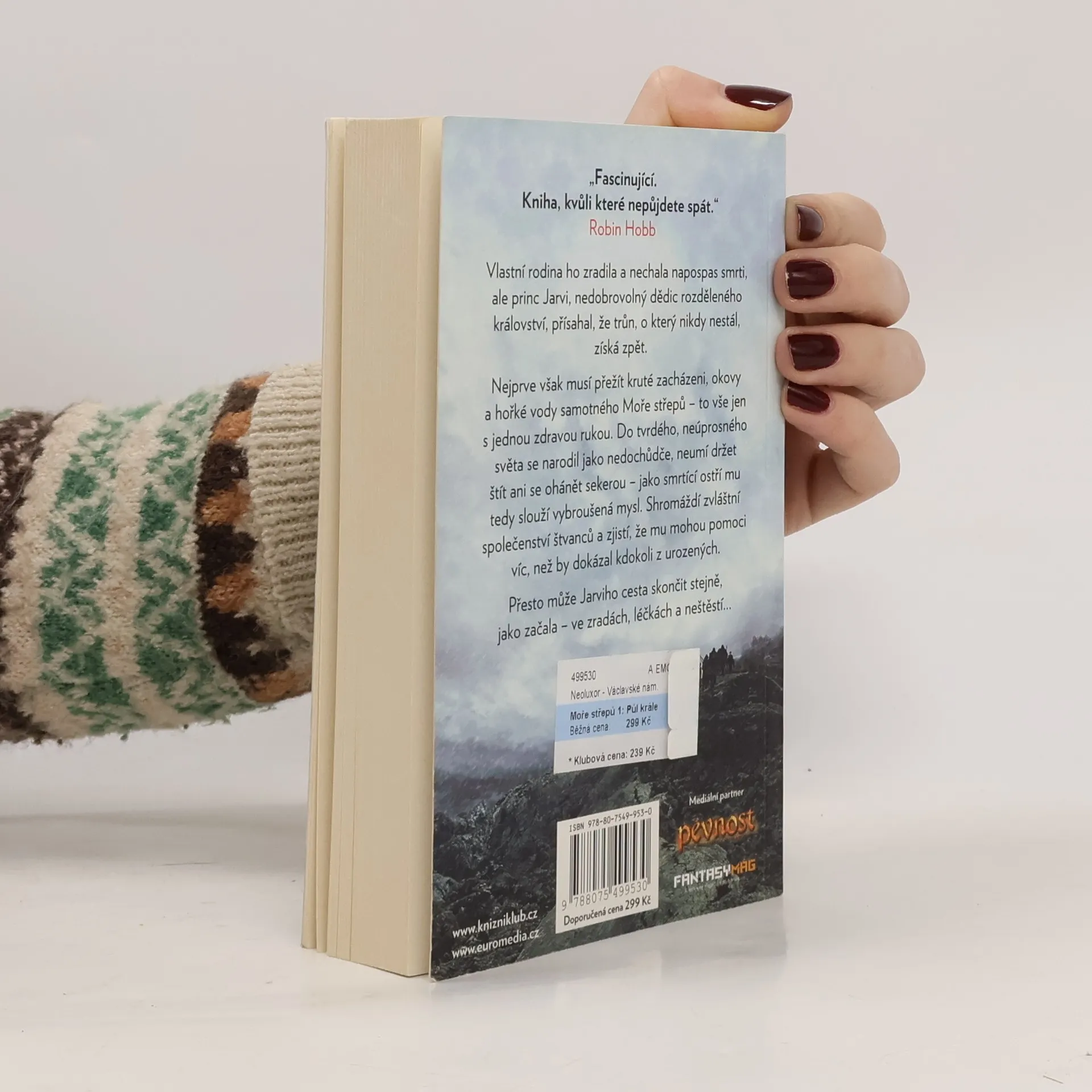 Vlastní rodina ho zradila a nechala napospas smrti, ale princ Jarvi, nedobrovolný dědic rozděleného království, přísahal, že trůn, o který nikdy nestál, získá zpět. Nejprve však musi přežít kruté zacházení, okovy a hořké vody samotného Roztříštěného moře – to vše jen s jednou zdravou rukou. Do tvrdého, neúprosného světa se narodil jako nedochůdče, neumí držet štít ani se ohánět sekerou – jako smrtíci ostří mu tedy slouží vybroušená mysl. Shromáždí zvláštní společenství štvanců a zjistí, že mu mohou pomoci víc, než by dokázal kdokoli z urozených. Přesto může Jarviho cesta skončit stejně, jako začala – ve zvratech, léčkách a neštěstí...