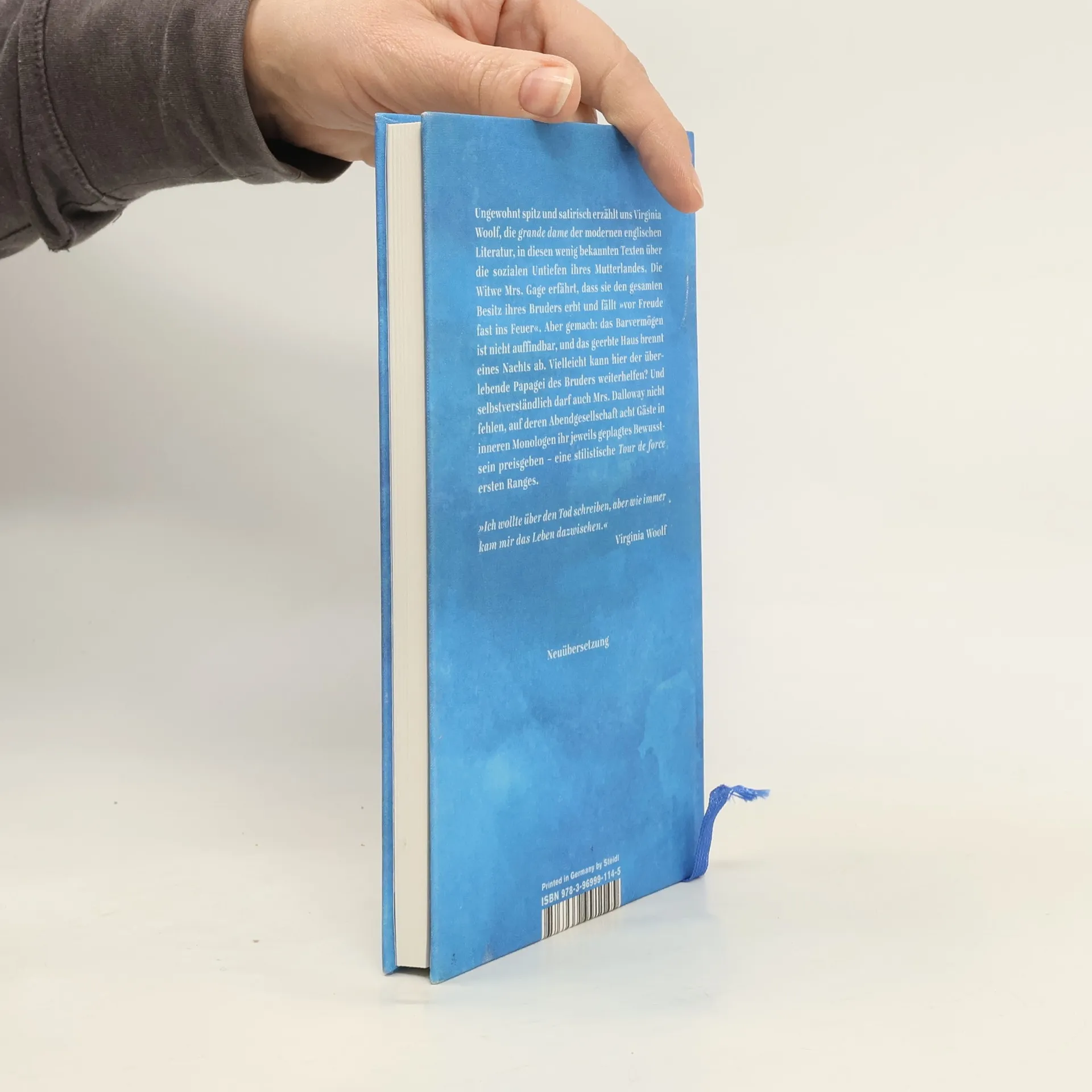 Virginia Woolf (1882–1941), die grande dame der modernen englischen Literatur, tritt uns hier mit skurrilen Perspektiven auf die englische Gesellschaft entgegen – mit einem Wort: very British. Auch der schwarze Humor ist oft nicht weit. Die Witwe Mrs. Gage erfährt, dass sie den gesamten Besitz ihres Bruders erbt und fällt »vor Freude fast ins Feuer«. Aber gemach: das Barvermögen ist nicht auffindbar, und das geerbte Haus brennt eines Nachts ab. Vielleicht kann hier der überlebende Papagei des Bruders weiterhelfen? – Oder John, der in einem Vorort von London für das Parlament kandidiert: er verliert zunehmend beim Sammeln von ihn berückenden Glasscherben und alten Metallresten sein Ziel aus den Augen – oder gar den Verstand? Ungewohnt spitz und satirisch informiert uns Virginia Woolf in diesen wenig bekannten Texten über die sozialen Untiefen ihres Mutterlandes. Und selbstverständlich darf auch Mrs. Dalloway nicht fehlen, auf deren Abendgesellschaft acht Gäste in inneren Monologen ihr jeweils geplagtes Bewusstsein preisgeben – eine stilistische Tour de force ersten Ranges.
