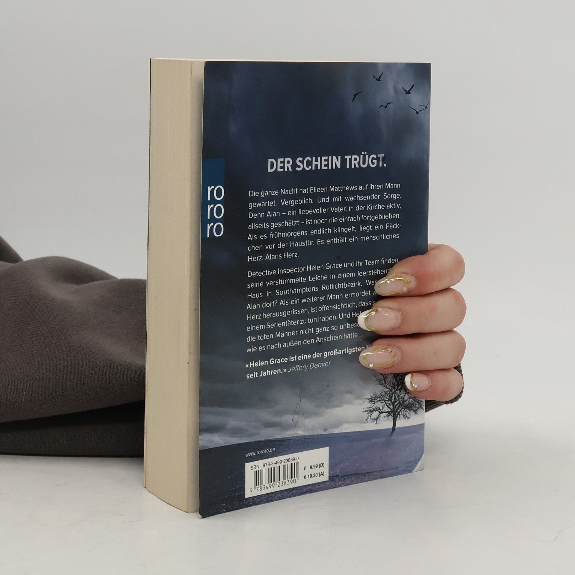 Der Schein trügt Die ganze Nacht hat Eileen auf ihren Mann gewartet. Mit wachsender Sorge. Denn Alan – ein liebevoller Vater, in der Kirche aktiv, allseits geschätzt – ist noch nie fortgeblieben. Als es morgens endlich klingelt, liegt nur ein Päckchen vor der Tür. Es enthält ein menschliches Herz. Alans Herz. D.I. Helen Grace und ihr Team finden seine verstümmelte Leiche in einem leer stehenden Haus in Southamptons Rotlichtbezirk. Doch was wollte Alan dort? Als ein weiterer Mann ermordet aufgefunden wird, das Herz herausgerissen, wird Helen klar, dass sie es mit einem Serienmörder zu tun hat. Und dass die toten Männer nicht ganz so unbescholten waren, wie es nach außen den Anschein hatte.