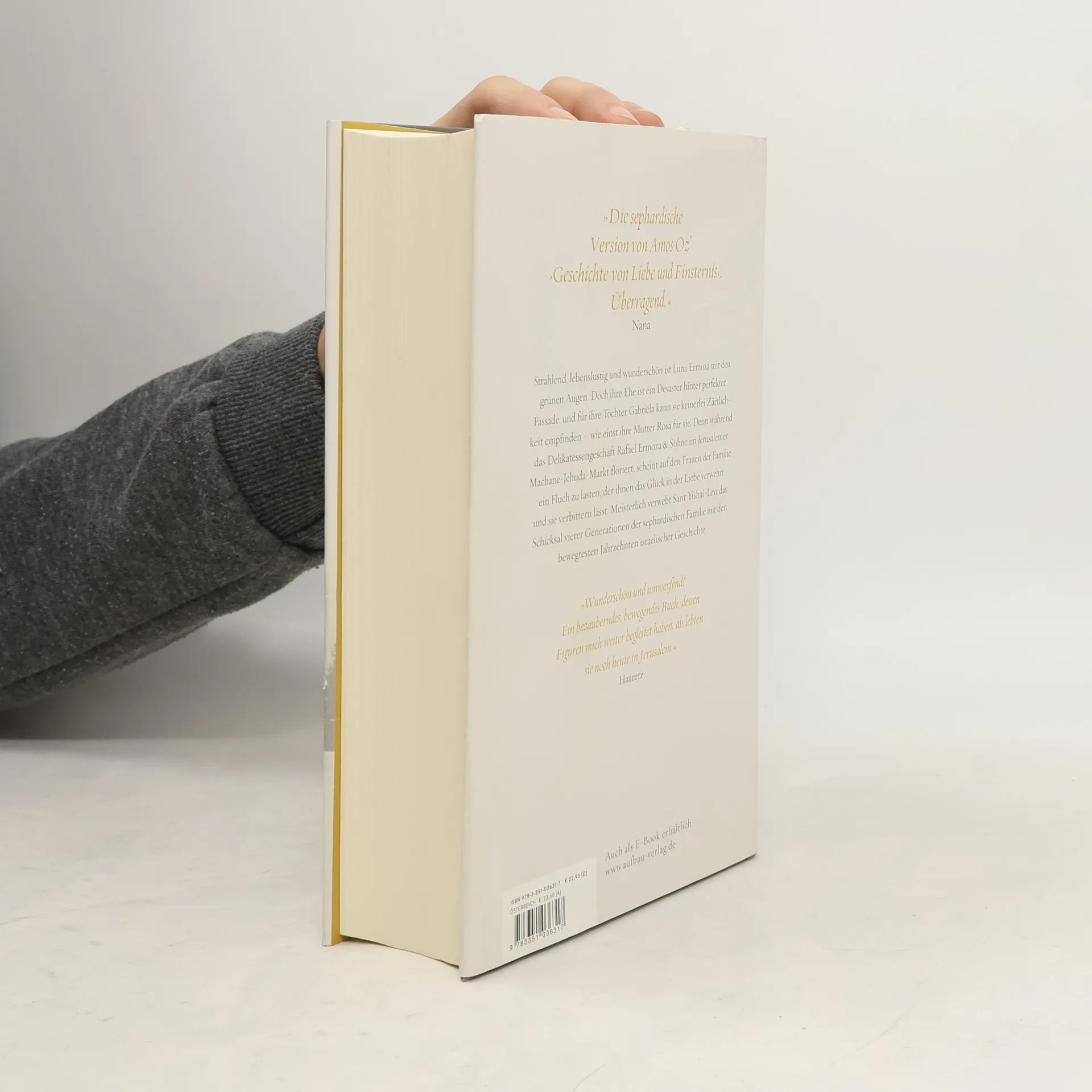 »Die sephardische Version von Amos Oz’ ›Geschichte von Liebe und Finsternis‹. Überragend.« Nana Strahlend, lebenslustig und wunderschön ist Luna Ermoza mit den grünen Augen. Doch ihre Ehe ist ein Desaster hinter perfekter Fassade, und für ihre Tochter Gabriela kann sie keinerlei Zärtlichkeit empfinden – wie einst ihre Mutter Rosa für sie. Denn während das Delikatessengeschäft Rafael Ermoza & Söhne im Jerusalemer Machane-Jehuda-Markt floriert, scheint auf den Frauen der Familie ein Fluch zu lasten, der ihnen das Glück in der Liebe verwehrt und sie verbittern lässt. Meisterlich verwebt Sarit Yishai-Levi das Schicksal vierer Generationen der sephardischen Familie mit den bewegtesten Jahrzehnten israelischer Geschichte. „Wunderschön und umwerfend! Ein bezauberndes, bewegendes Buch, dessen Figuren mich weiter begleitet haben, als lebten sie noch heute in Jerusalem.“ Haaretz