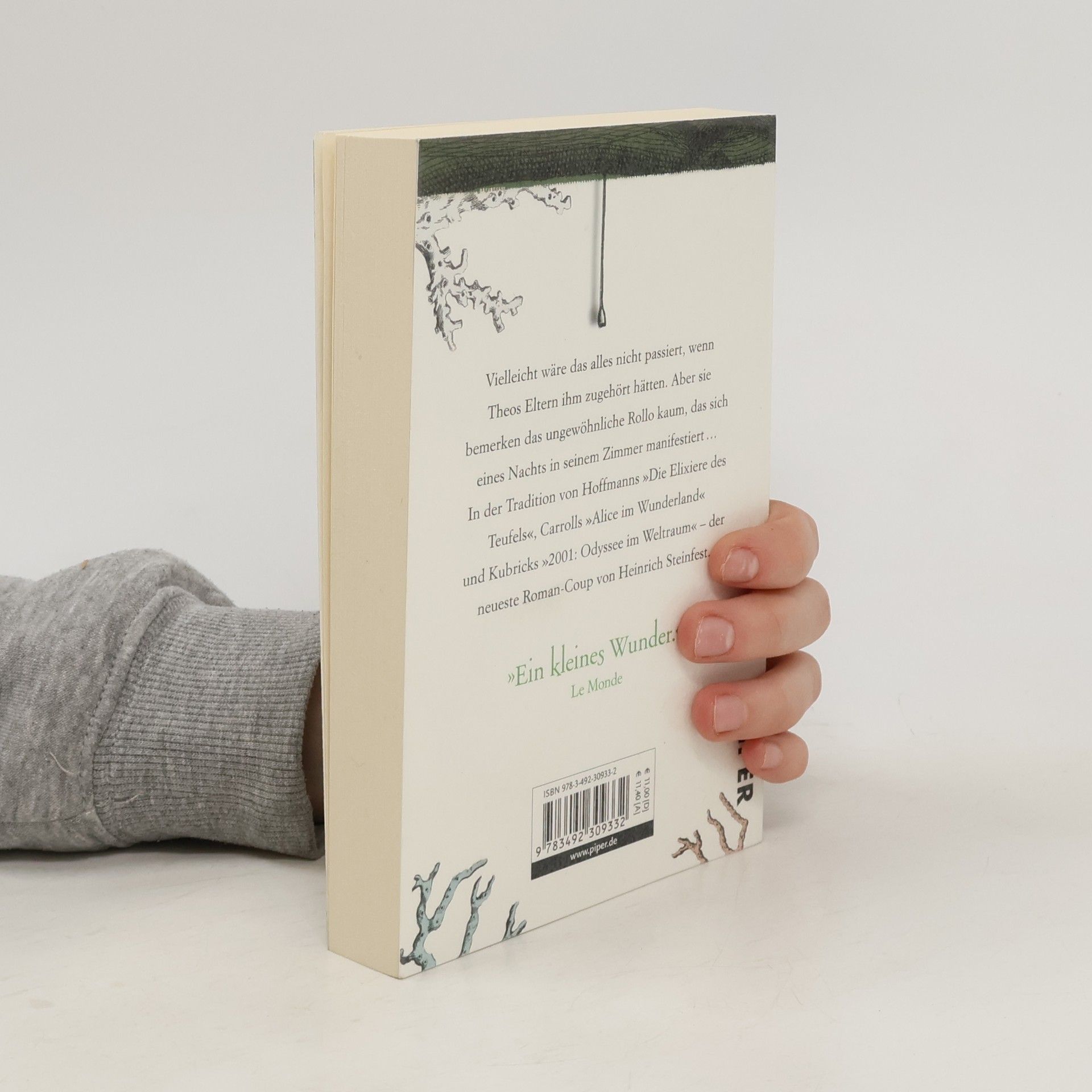 Mit einem Ratsch ist es plötzlich da. Vor Theos Fenster bläht sich im Mondlicht ein grünes Rollo. Tagsüber verschwindet es, aber von nun an entrollt es sich jede Nacht um exakt dieselbe Zeit. Theo ist sich sicher, dass dort, auf der anderen Seite des Rollos, eine eigene Welt existiert. Nach schlaflosen Nächten fasst er sich ein Herz und beschließt, in jene andere Sphäre hinüberzusteigen ... In der Tradition von Hoffmanns »Elixieren des Teufels«, »Carrolls Alice im Wunderland« und Kubricks »Space Odyssee 2001« – der neueste Coup von Heinrich Steinfest.