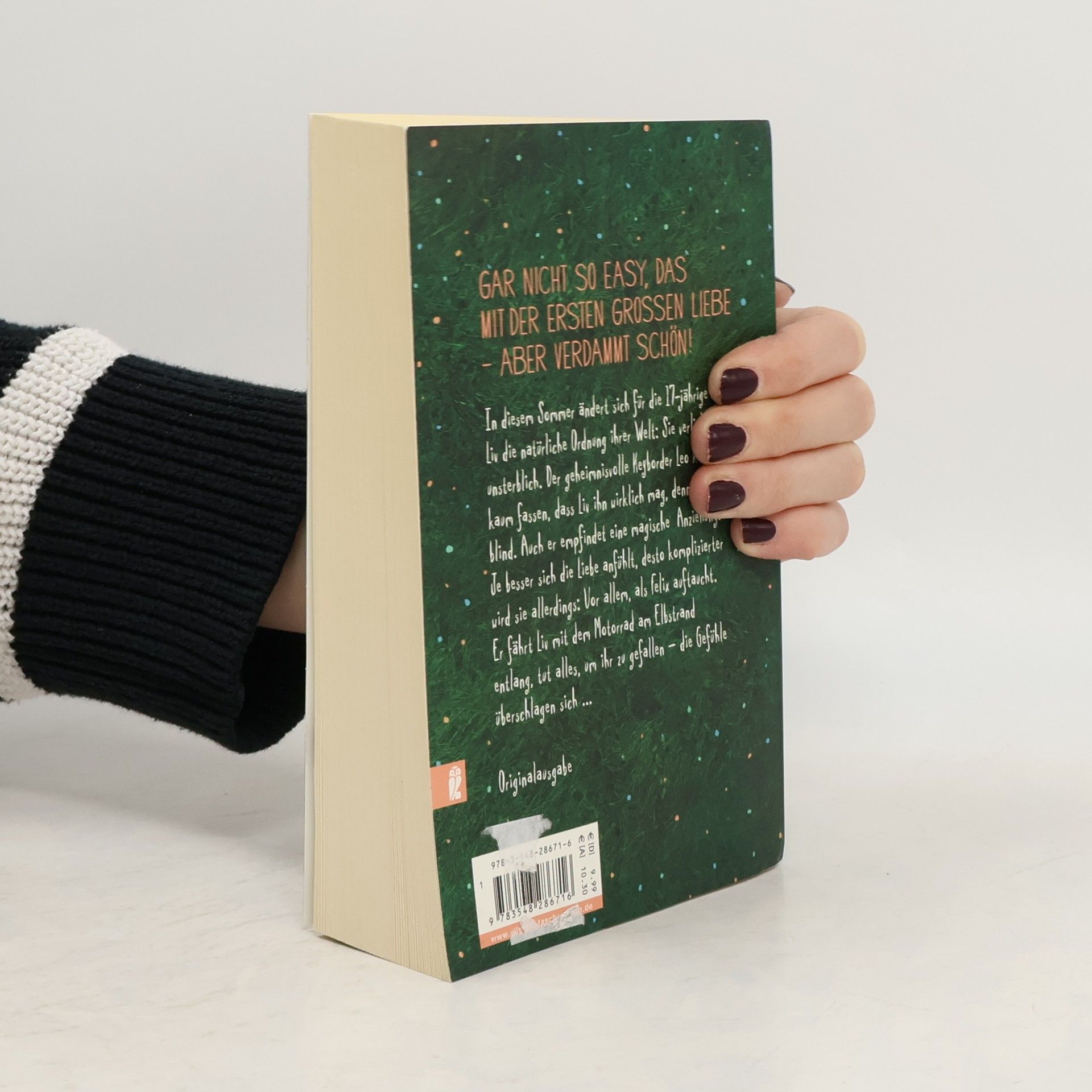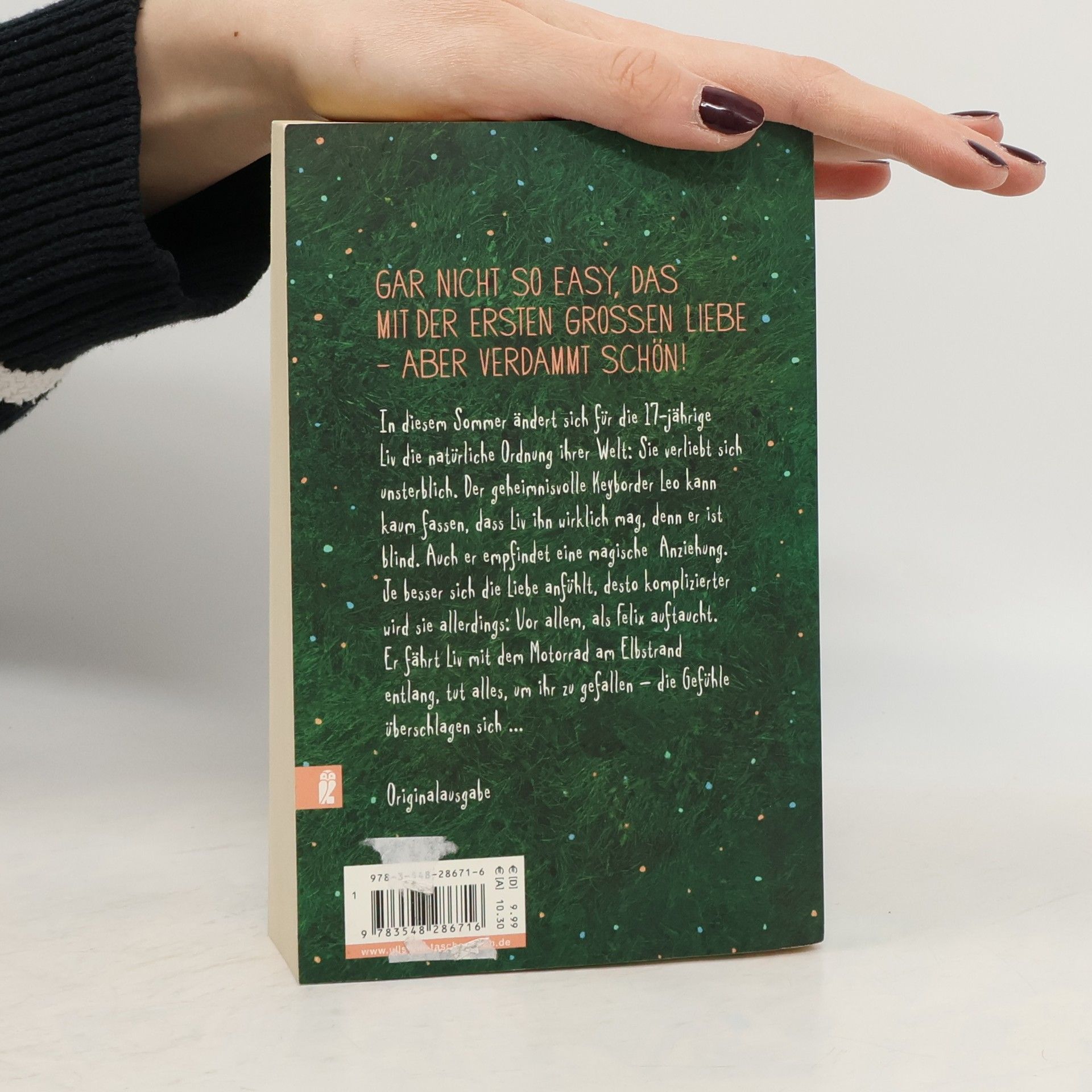 Als die siebzehnjährige Liv mit ihrer Mutter in eine Kleinstadt an der Elbe zieht und eigentlich nichts als Einöde erwartet, kommt alles Schlag auf Schlag: Ihre neue Freundin Nessie wird ungewollt schwanger, und der Bad Boy Felix verliebt sich Hals über Kopf in sie. Er kutschiert sie mit seinem Motorrad, wohin sie will, tut alles, um ihr zu gefallen. Doch da gibt es noch jemanden: Leo ist Keyborder einer Coverband, und seit dem ersten Live-Auftritt der Jungs will Liv nur noch in seiner Nähe sein. Leo kann nicht glauben, dass Liv ihn wirklich liebt; er ist blind. Die Anziehung zwischen den beiden ist stark, aber die Widerstände gegen ihre Liebe sind groß …