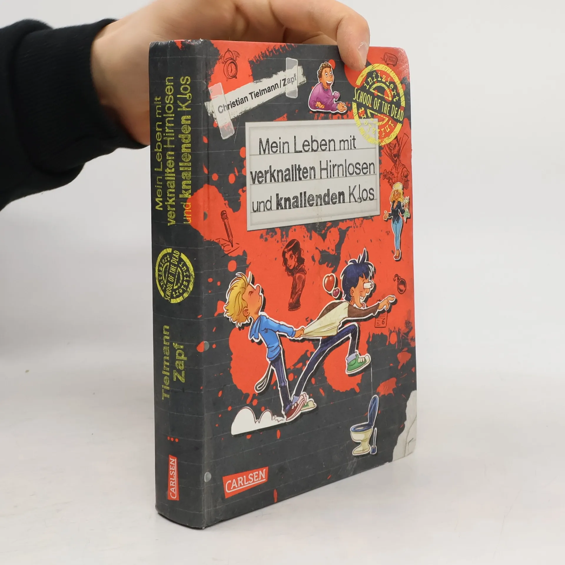Max hat das erste Schuljahr überlebt - trotz Zombiealarm! Doch Freunde sind er und Edgar immer noch nicht. Dafür hat er ja Nico und Jamal. Oder? Seit die beiden in die neue Chemielehrerin verliebt sind, kann man sie für nix mehr gebrauchen. Eins könnte Max aufheitern: Er ist jetzt in der Redaktion der Schülerzeitung. Dann wird einer seiner Comics veröffentlicht, der ganz schön lustig ist. Leider finden das nicht alle Schüler – oder Lehrer. Max muss die stinkende Mädchentoilette im fünften Stock renovieren und sieht daher nur hilflos mit an, wie Zombie-Edgar Pauline vollschleimt. Nein, zum Glück nicht ganz hilflos. Nico und Jamal haben trotz Hirnvernebelung ein paar explosive Ideen, die Max entweder retten oder in noch viel größere Schwierigkeiten bringen. - Band 2 der neuen Reihe mit viel Witz und einigen Untoten - bis obenhin voll mit tollen Illustrationen - ideal für Jungs und comicaffine Mädchen
