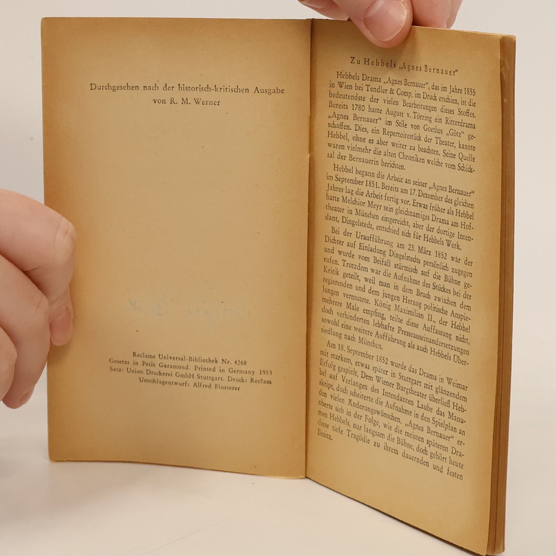 Christian Friedrich Hebbel (1813-1863) war ein deutscher Dramatiker und Lyriker. Durch ein zweijÃnhriges Reisestipendium des dÃnnischen Kà nigs Christian VIII. wurde ihm die weite Welt erà ffnet. ZunÃnchst reiste er nach Paris. Dort schrieb er das Trauerspiel Maria Magdalena, welches im Jahre 1843 fertig wurde und bis heute sein grà à ter Erfolg blieb. In Wien, wo Hebbel bis zu seinem Tod lebte, konnte er sich ungestà rt seiner literarischen Produktion widmen. Dort erhielt er auch à ffentliche Anerkennung und wurde schlieà lich als erster mit dem neu geschaffenen Schillerpreis ausgezeichnet. Hebbel schrieb vor allem Dramen, u.a. Agnes Bernauer (1851), Gyges und sein Ring (1854) sowie Die Nibelungen (1861). WÃnhrend seines gesamten Lebens zeigte Hebbel soziales und politisches Engagement. 1849 kandidierte er erfolglos fÃ'r die Frankfurter Nationalversammlung und in seinen Werken macht er oft die sozialen Probleme seiner Zeit zum Thema. Weitere Werke des Autors sind u. a.: Judith (1840), Der Diamant (1841), Anna (1847), Julia und Kà nig Peter (1847), Schnock (1848), Herodes und Mariamne (1848) und Mutter und Kind (1857).
