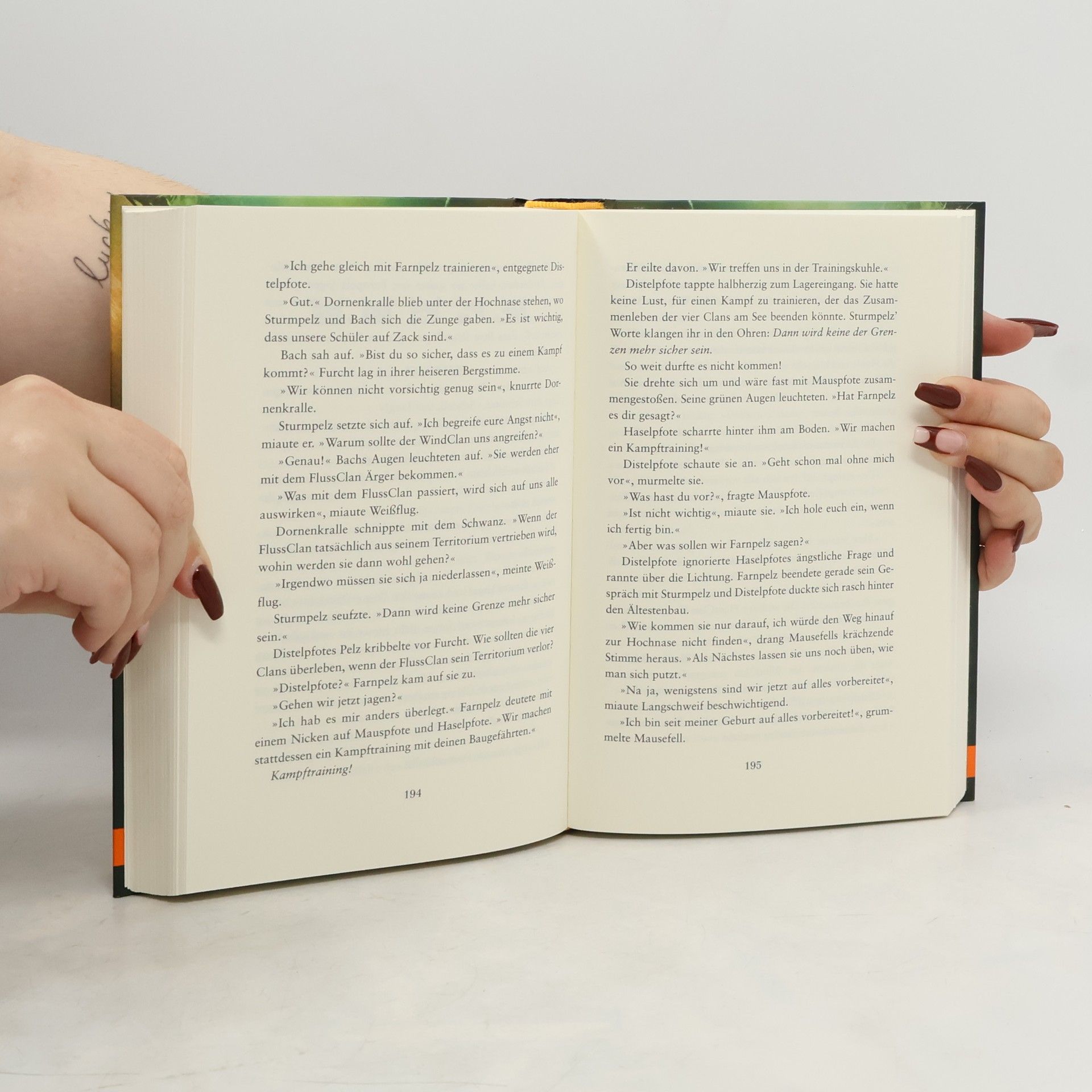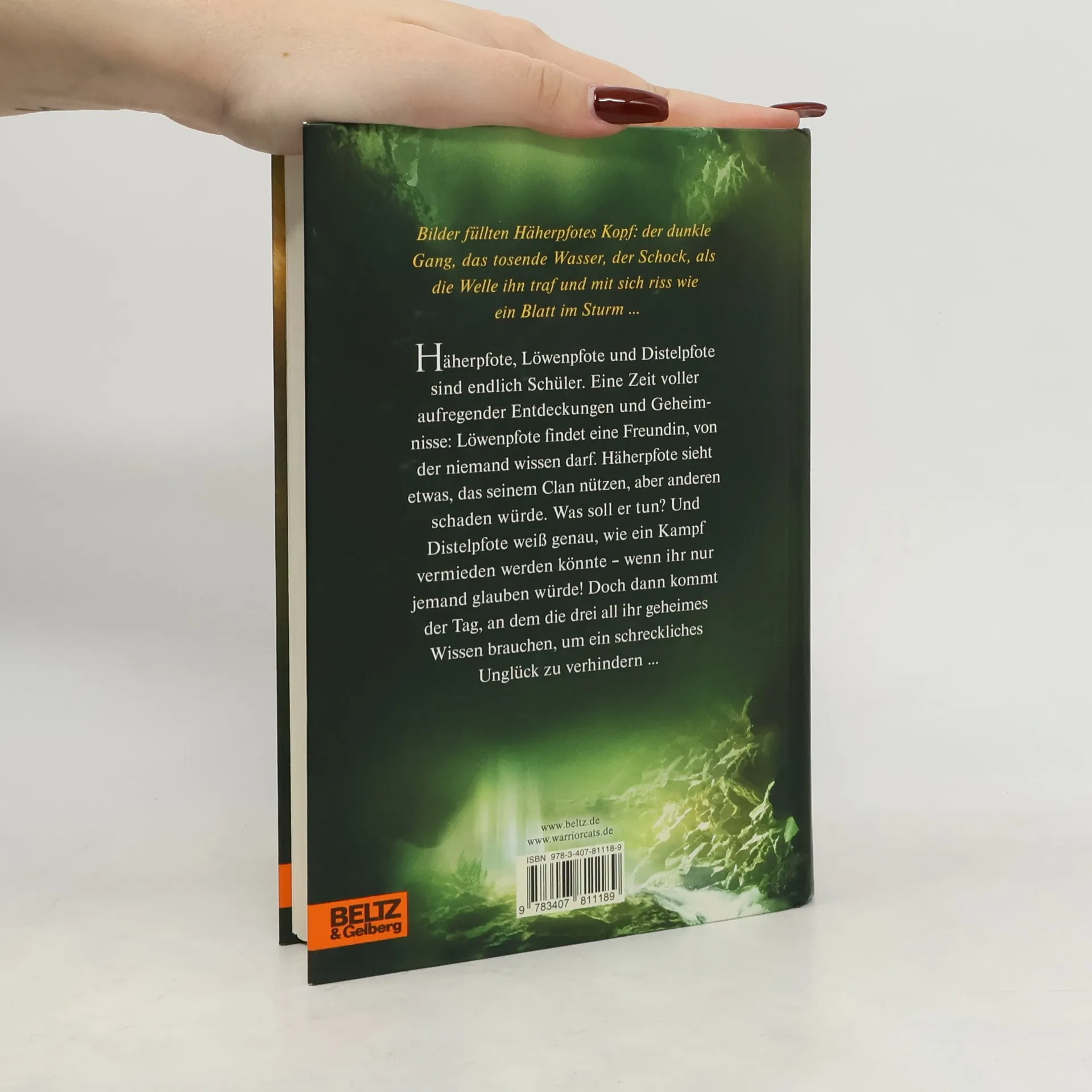 Bilder füllten Häherpfotes Kopf: der dunkle Gang, das tosende Wasser, der Schock, als die Welle ihn traf und mit sich riss wie ein Blatt im Sturm, während er nach Luft schnappte und doch nur Wasser zum Atmen fand. Löwenpfote, Häherpfote und Distelpfote sind endlich Schüler. Eine Zeit voller neuer, aufregender Entdeckungen – und Geheimnisse: Löwenpfote findet einen Freund, doch er muss ihn vor seinem Clan verbergen. Häherpfote sieht etwas, das seinem Clan nützen, aber anderen schaden würde. Was soll er tun? Und Distelpfote weiß genau, wie ein schrecklicher Kampf verhindert werden könnte – wenn ihr nur jemand glauben würde! Gefährliche Prüfungen und folgenreiche Erkenntnisse stehen den dreien bevor. Und bei allem scheint es, als wollten dunkle Mächte die Geschwister auseinanderreißen ...