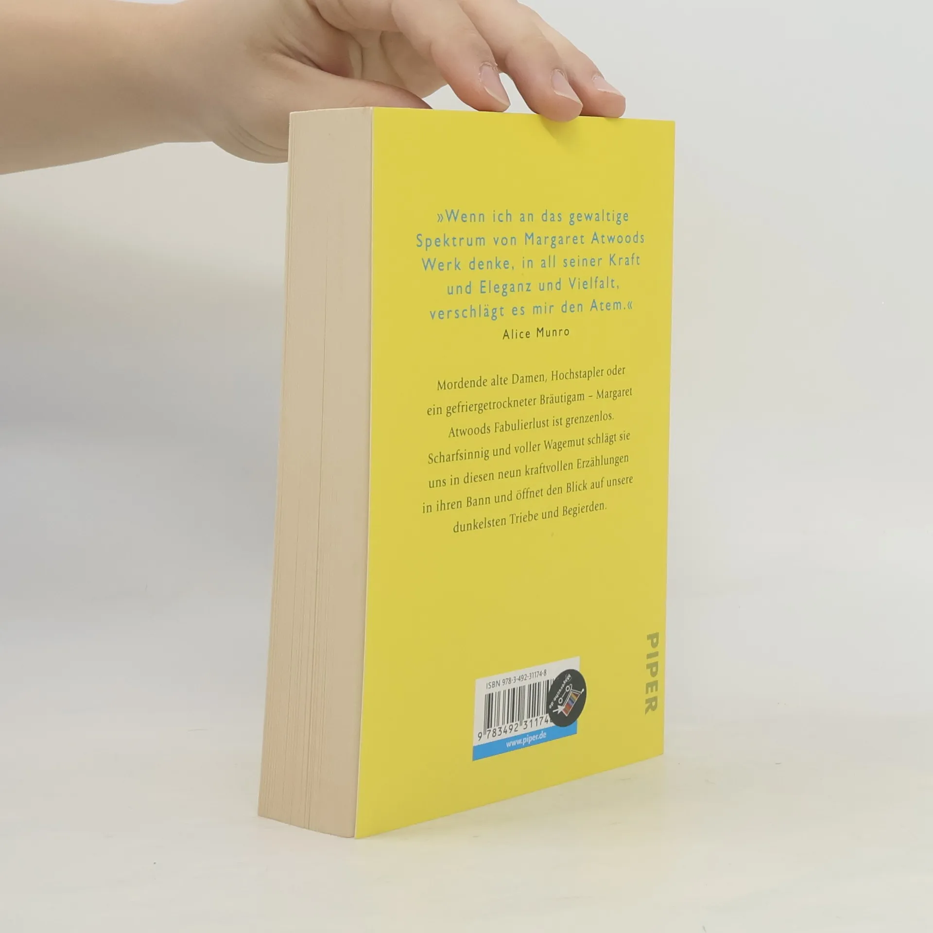 »Verna hatte anfänglich nicht vorgehabt, jemanden zu töten.« Mit diesem fulminanten ersten Satz beginnt die titelgebende Erzählung und sofort befindet man sich im Atwood-Kosmos, sofort wird man hineingezogen in eine Geschichte, die hintergründig, spannend und unglaublich komisch zugleich ist. Mordende alte Damen, Hochstapler oder ein gefriergetrockneter Bräutigam – Margaret Atwoods Fabulierlust ist grenzenlos. Scharfsinnig und voller Wagemut schlägt sie uns in diesen neun kraftvollen Erzählungen in ihren Bann und öffnet den Blick auf unsere dunkelsten Triebe und Begierden.