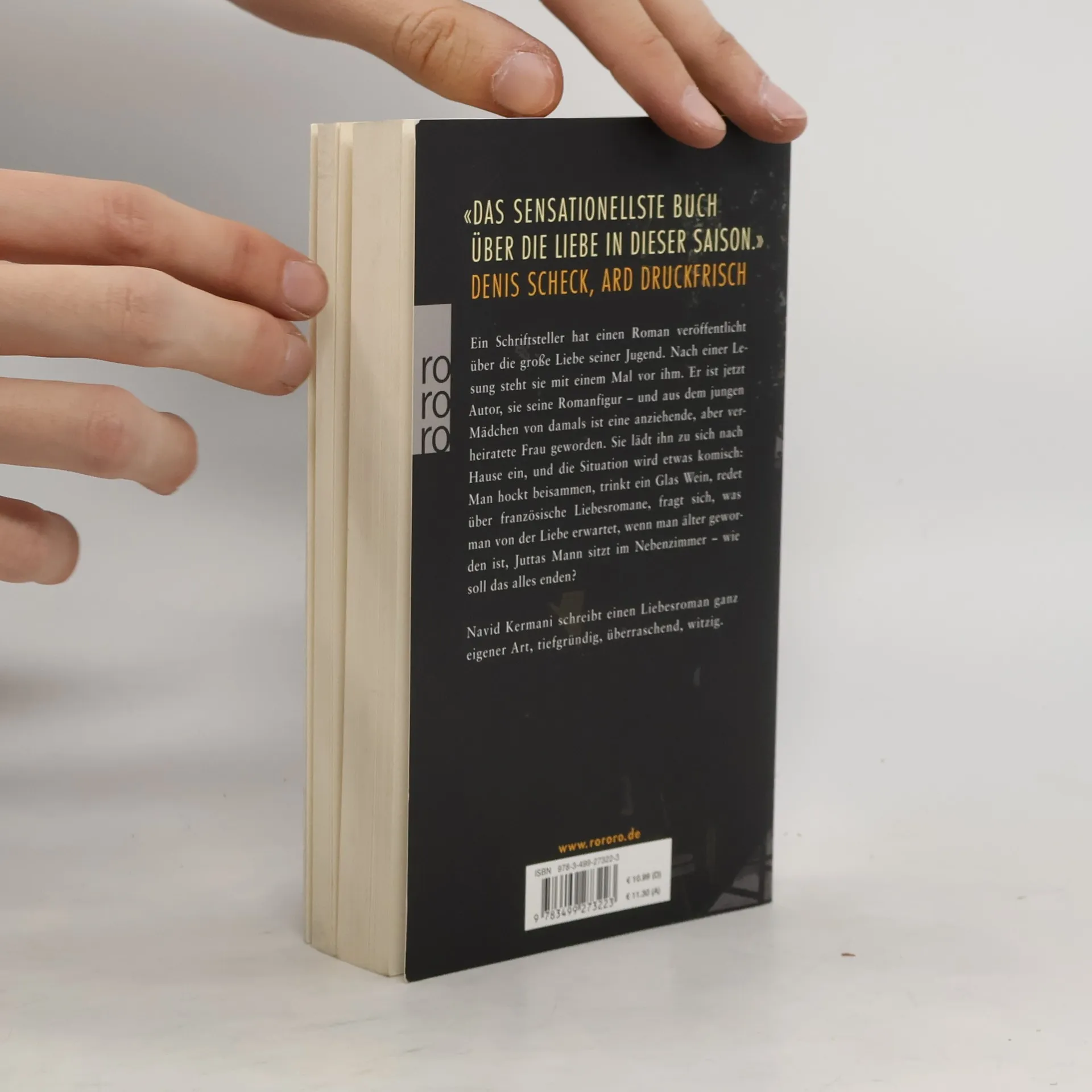 Ein Schriftsteller hat einen Roman veröffentlicht über die große Liebe seiner Jugend. Nach einer Lesung steht sie mit einem Mal vor ihm. Er ist jetzt Autor, sie seine Romanfigur – und aus dem jungen Mädchen von damals ist eine anziehende, aber verheiratete Frau geworden. Sie lädt ihn zu sich nach Hause ein, und die Situation wird etwas komisch: Man hockt beisammen, trinkt ein Glas Wein, redet über französische Liebesromane, fragt sich, was man von der Liebe erwartet, wenn man älter geworden ist, Juttas Mann sitzt im Nebenzimmer – wie soll das alles enden? Navid Kermani schreibt einen Liebesroman ganz eigener Art, tiefgründig, überraschend, witzig.
