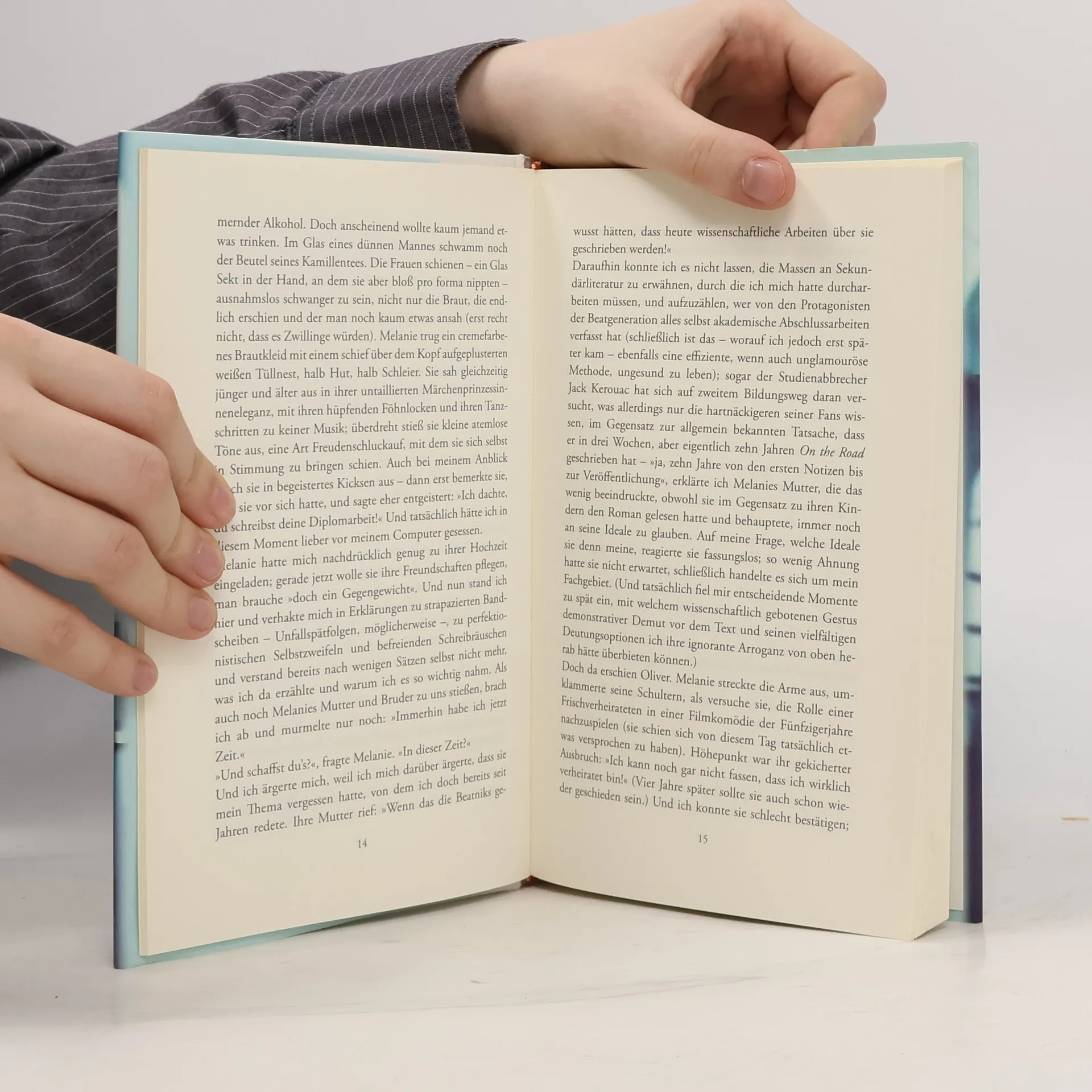 Eine Liebesgeschichte: Die Ich-Erzählerin fährt zu einer Hochzeit, lernt den Ex-Freund der Braut kennen, verliert ihn wieder aus den Augen, doch dann – nein, was dann passiert, wird nicht verraten, auch wenn die Erzählerin sich selbst durchaus gerne vorgreift, vor und zurück springt, quer durch die Zeitebenen, immer im Schatten von Jack Kerouacs ereignisreicherem Leben. Über den schreibt sie ihre Diplomarbeit; und immerhin fühlt sich der Termindruck kurz vorm Abgabedatum nach Ausnahmezustand und Abenteuer an – so dass sie darüber beinahe versäumt, was ihr wenig aufregendes, aber umso hektischeres Leben doch an Erfahrungen und Begegnungen zu bieten hat. Neben prekären Jobs und wild gemischten Gefühlen in verschiedenen Freundschafts- und Familienkonstellationen gibt es auch für sie das Glück des richtigen Moments. Selbstironisch zelebriert die Erzählerin ihre Sehnsucht nach den großen Geschichten, nach dem wirklichen Leben – bekannt aus Film, Funk, Fernsehen, Literatur und Internet –, während sich das Hier und Jetzt oft genug als unspektakulär erweist. Sie ist bestens vernetzt und stets aktuell darüber informiert, was es alles zu verpassen gibt; als chronische Zuspätkommerin weiß sie, dass das Wesentliche längst vorbei ist, aber im Nachhinein alles auch anders aussehen kann.