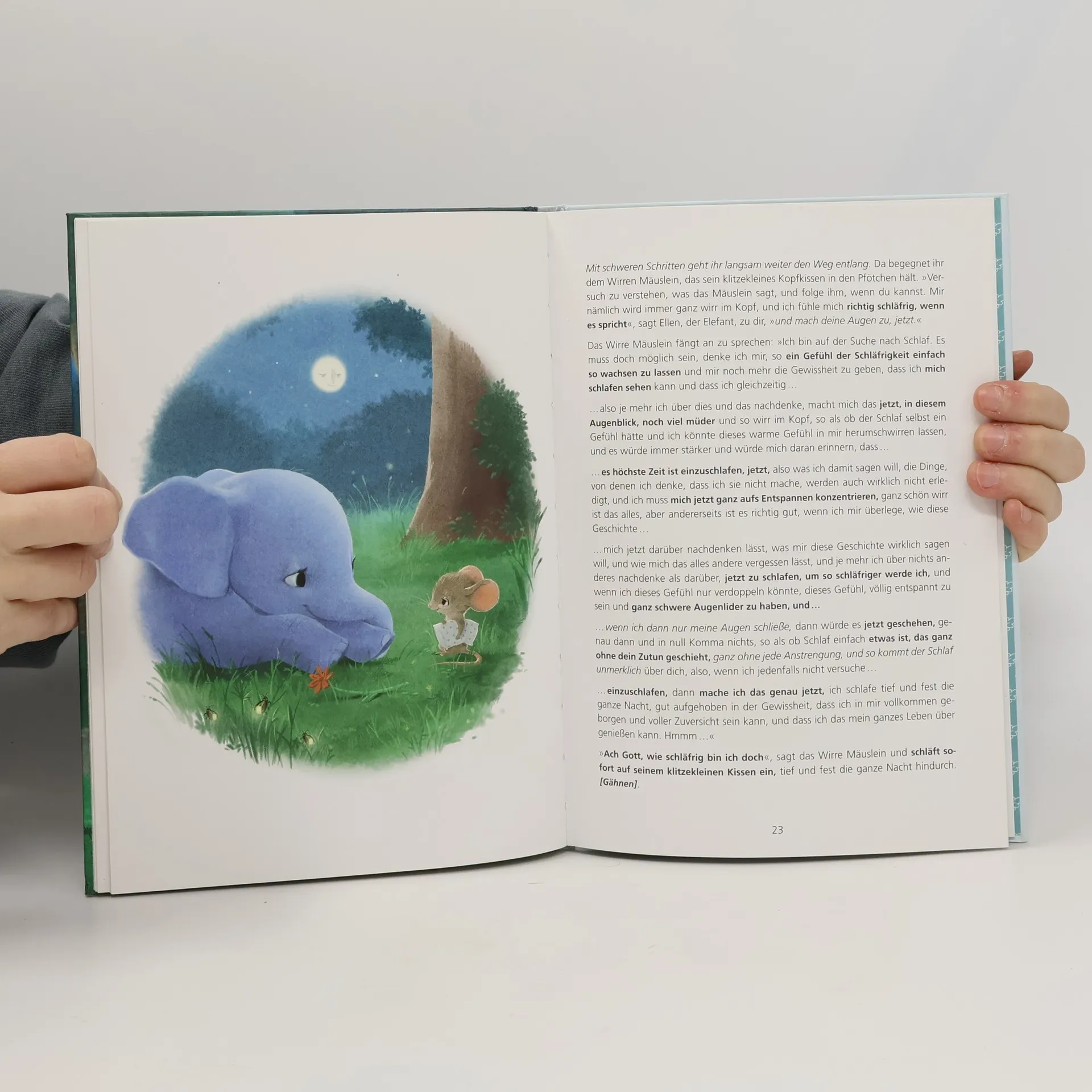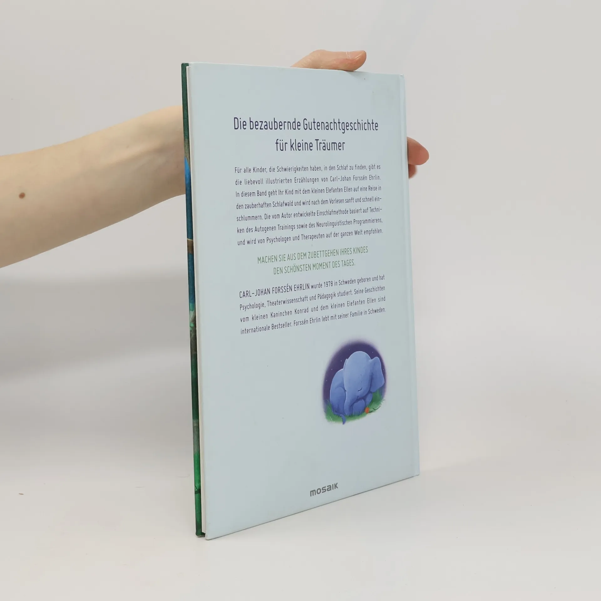 Der kleine Eelfant führt in einer liebevollen Vorlesegeschite Ihr Kind ins Reich der Träume. Mit vielen Vorlesetipps und fett gestzten Stellen zum Einsetzen des idnividuellen Namen.