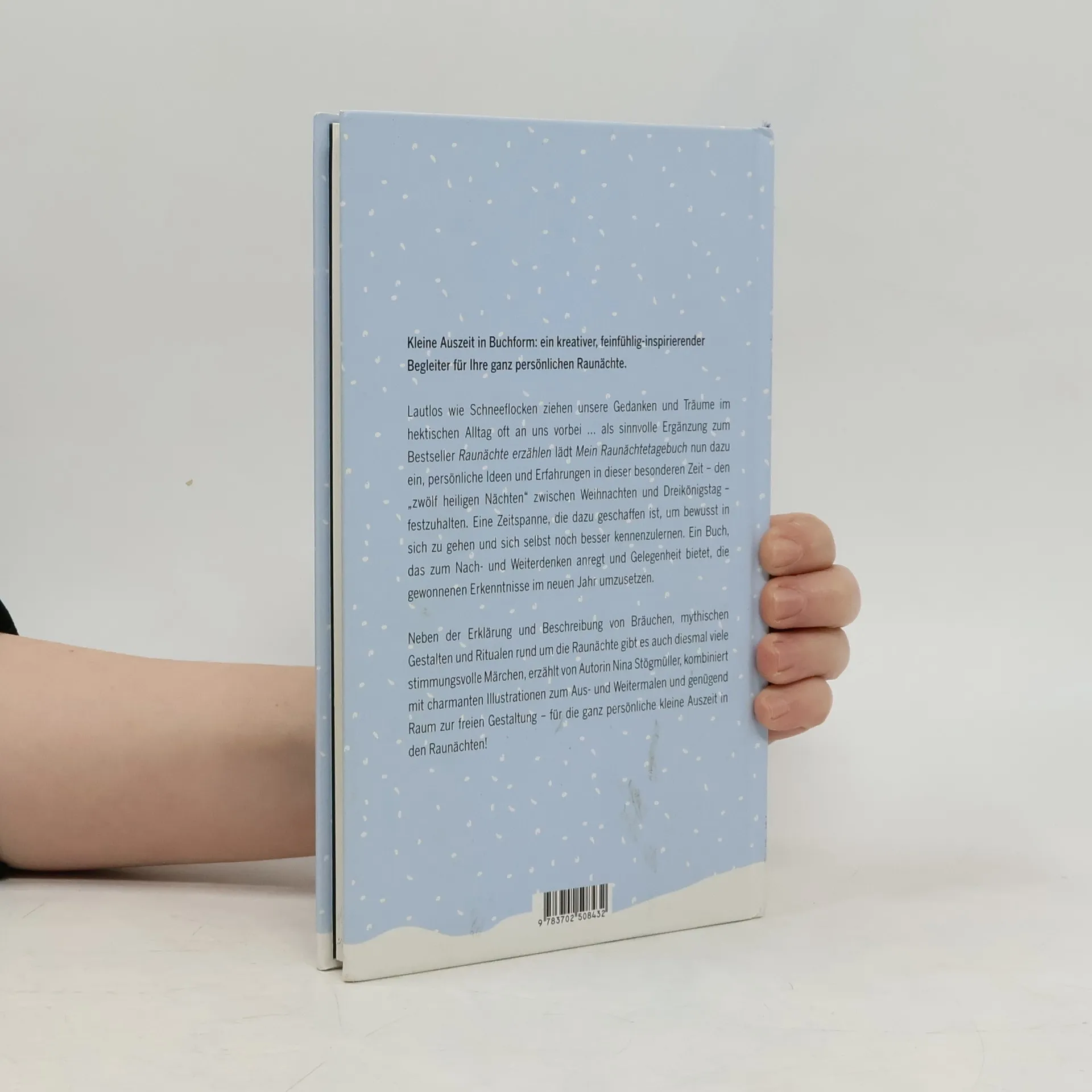 Begleitend zum Lese- und Märchenbuch „Raunächte erzählen“ gibt es nun auch ein persönliches Raunächtetagebuch, das dazu einlädt, in der Zeit zwischen den Jahren in die eigene „Anderswelt“ einzutauchen. Ein Sachteil führt zu Beginn in die Raunächte ein. Der Leseteil bietet in den einzelnen Kapiteln besinnliche Texte rund um die raunächtlichen Tagesthemen sowie ein tägliches Raunachtsmärchen. In zwölf Kapiteln begleitet das Buch seine Leserinnen und Leser durch die Tage und Nächte zwischen Weihnachten und Dreikönigstag. Vorangestellt ist ein Kapitel über den 21. Dezember, den Tag der Wintersonnenwende. Das Buch gibt Anregungen, wie man die Raunächte so gut wie möglich nutzen kann, um sich selbst wieder näher – und damit verbunden – zur Ruhe zu kommen. Jahresrückblick, Jahresausblick, Räuchern, Traumdeutung und Orakel: „Mein Raunächtetagebuch“ bietet einen liebevollen Leitfaden dazu. Innenschau und Kreativität sind eng miteinander verbunden. Deshalb findet sich in jedem Kapitel ein zum Tagesthema passendes Ausmalbild. Verbunden mit den eigenen Eintragungen gestalten die Leserinnen und Leser ihr ganz persönliches Raunächtetagebuch. Ein besonderes Buch für Menschen, die „ihre“ Raunächte selbst gestalten möchten, um sich damit noch intensiver auf die zwölf heiligen Nächte im Jahr einlassen zu können.
