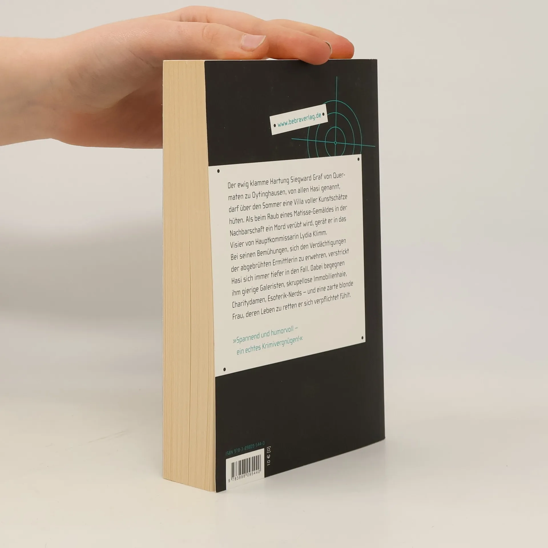 Der ewig klamme Hartung Siegward Graf von Quermaten zu Oytinghausen, von allen Hasi genannt, darf über den Sommer eine Villa voller Kunstschätze hüten. Als beim Raub eines Matisse-Gemäldes in der Nachbarschaft ein Mord verübt wird, gerät er in das Visier von Hauptkommissarin Lydia Klimm. Bei seinen Bemühungen, sich den Verdächtigungen der abgebrühten Ermittlerin zu erwehren, verstrickt Hasi sich immer tiefer in den Fall. Dabei begegnen ihm gierige Galeristen, skrupellose Immobilienhaie, Charitydamen, Esoterik-Nerds – und eine zarte blonde Frau, deren Leben zu retten er sich verpflichtet fühlt.