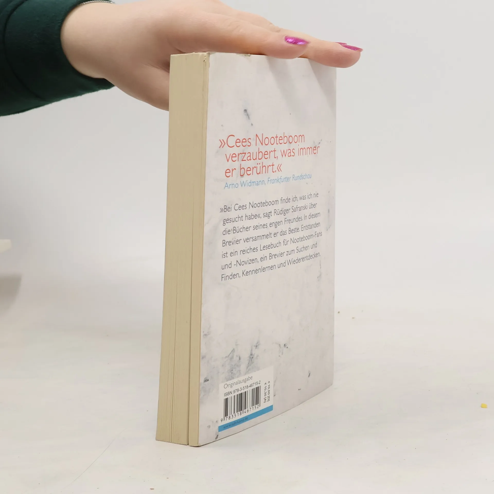 Unterwegs ist Cees Nooteboom sein ganzes Leben lang. Sein Zuhause ist die Welt. Hellwach und phantasievoll sammelt er Begegnungen, Städte und Landschaften und »verzaubert, was immer er berührt« (Arno Widmann). Das Brevier, das Rüdiger Safranski aus den Romanen, Erzählungen, Gedichten und Reiseessays seines langjährigen Freundes zusammengestellt hat, liegt nun zum Buchmesseschwerpunkt Niederlande und Flandern in einer erweiterten Fassung vor, die bis in seine neuesten Publikationen reicht. Entstanden ist ein Lesebuch für Nooteboom-Fans und -Novizen, ein Brevier zum Suchen und Finden, Kennenlernen und Wiederentdecken. Es zeichnet das faszinierende Porträt eines lebensklugen Nomaden zwischen den Zeiten und Welten, neugierig wie eh und je, denn »man muss gelebt haben und darf damit noch nicht aufhören«.