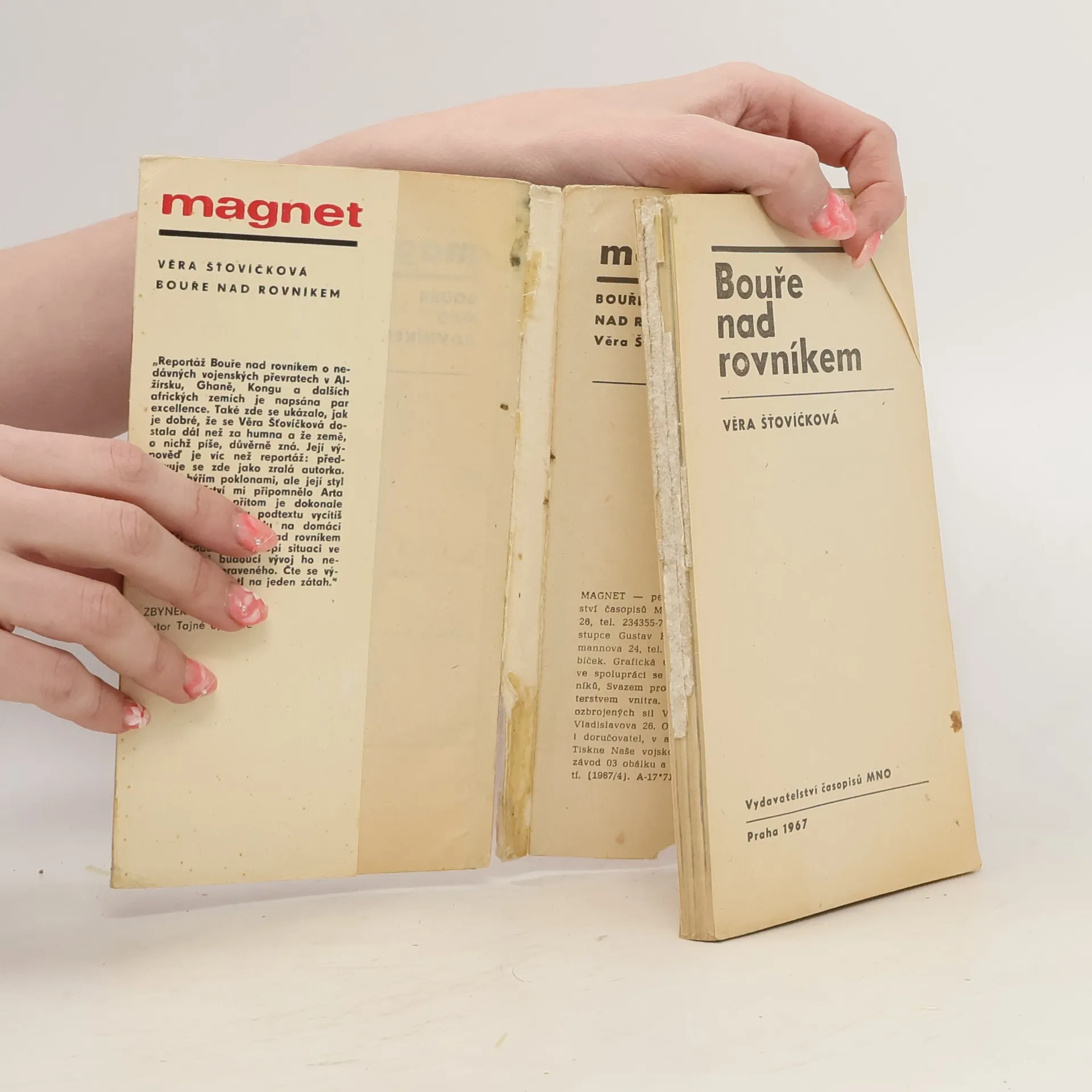Reportáž „Bouře nad rovníkem“ o vojenských převratech v Alžírsku, Středoafrické republice, Kongu, Nigérii, Ghaně a dalších afrických zemích. Vychází ve spolupráci se Svazem protifašistických bojovníků, Svazem pro spolupráci s armádou a ministerstvem vnitra. Ročník třetí. Magnet 4/67.