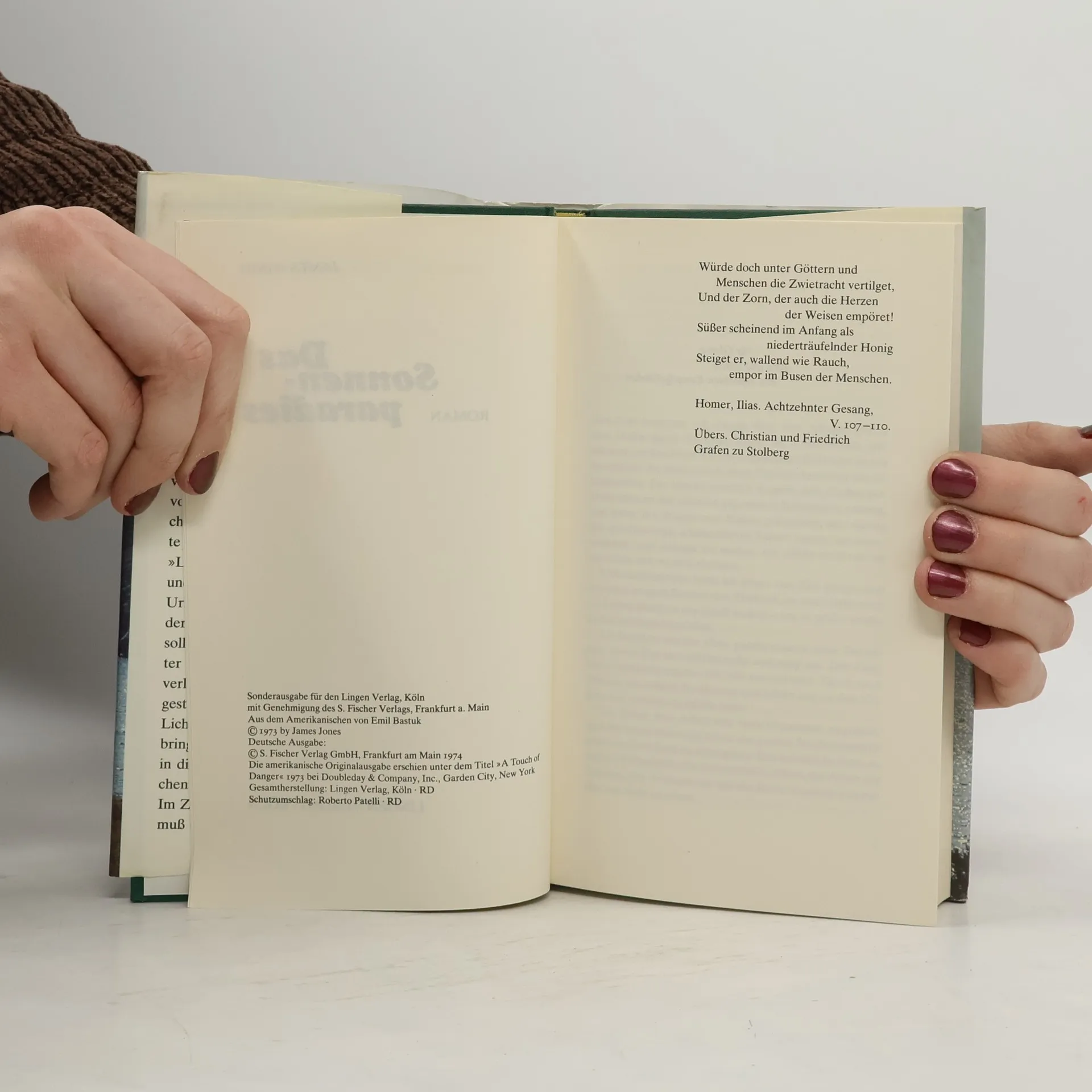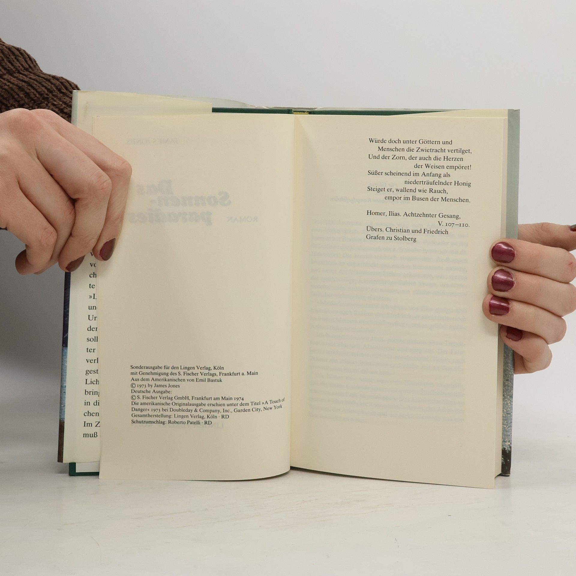 Vor der Kulisse einer idyllischen Insel im griechischen Archipel, Sommertraum gammelnder Hippies und abgetakelter Aristokraten, verdüstern zwei Morde den Touristenhimmel. Privatdetektiv Lobo Davies entwirrt die turbulente Handlung. Mit der Kraft eines Elefanten, den nichts umschmeißt, mit einem Whiskykonsum, der ein Schiff versenken könnte, und dem Charme eines Humphrey Bogart schlägt er sich durch alle Hinterhalte, Anschläge und Prügeleien hindurch, um am Schluß dem Mörder und einem ausgedehnten Heroinring das Handwerk zu legen. Und wenn er nicht gerade auf Jagd ist, zeigt sich Lobo Davies als echter Held von James Jones: Empfänglich für die weiblichen Reize der süßen Marie und der Baronin Chantal sowie für den Zauber der Tiefsee...