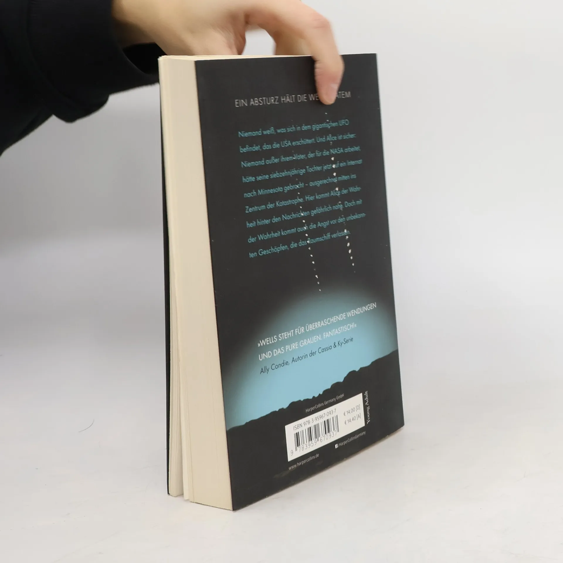 Niemand weiß, was sich in dem gigantischen UFO befindet, das die Welt nach seinem Absturz in Atem hält. Und Alice ist sicher: Niemand außer ihr Vater, der für die NASA arbeitet, hätte seine siebzehnjährige Tochter jetzt auf ein Internat nach Minnesota gebracht - ausgerechnet mitten ins Zentrum der Katastrophe. Hier kommt Alice der Wahrheit hinter den Nachrichten gefährlich nahe. Doch mit der Wahrheit kommt auch die Angst vor den unbekannten Geschöpfen, die das Raumschiff verlassen … „Ein Buch, das bis ins Mark erschüttert. Eine kluge Prämisse, ein schnelles Erzähltempo und Charaktere, denen man sofort folgt – dies sind die Zutaten für eine rasante Wells-Lektüre.“ Publishers Weekly „Ein durchdacht ausgearbeitetes Action-Abenteuer, das die Leser auch nach der letzten Seite noch nachhaltig beeindrucken wird.“ Kirkus Reviews „Wells steht für überraschende Wendungen und das pure Grauen. Fantastisch!“ Ally Condie, #1 NYT-Autorin