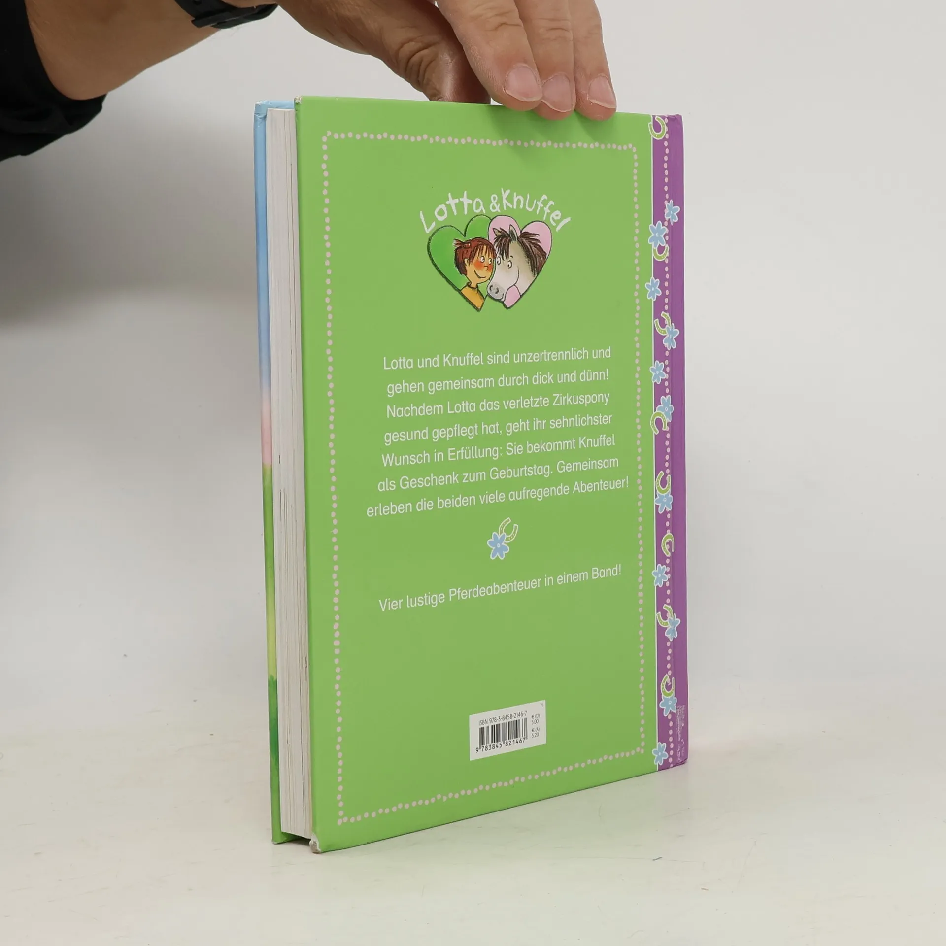 Lotta und Knuffel sind unzertrennlich und gehen gemeinsam durch dick und dünn! Nachdem Lotta das verletzte Zirkuspony gesund gepflegt hat, geht ihr sehnlichster Wunsch in Erfüllung: Sie bekommt Knuffel als Geschenk zum Geburtstag! Und gemeinsam erleben die beiden viele aufregende Abenteuer! 4 lustige Pferdeabenteuer in einem Band!