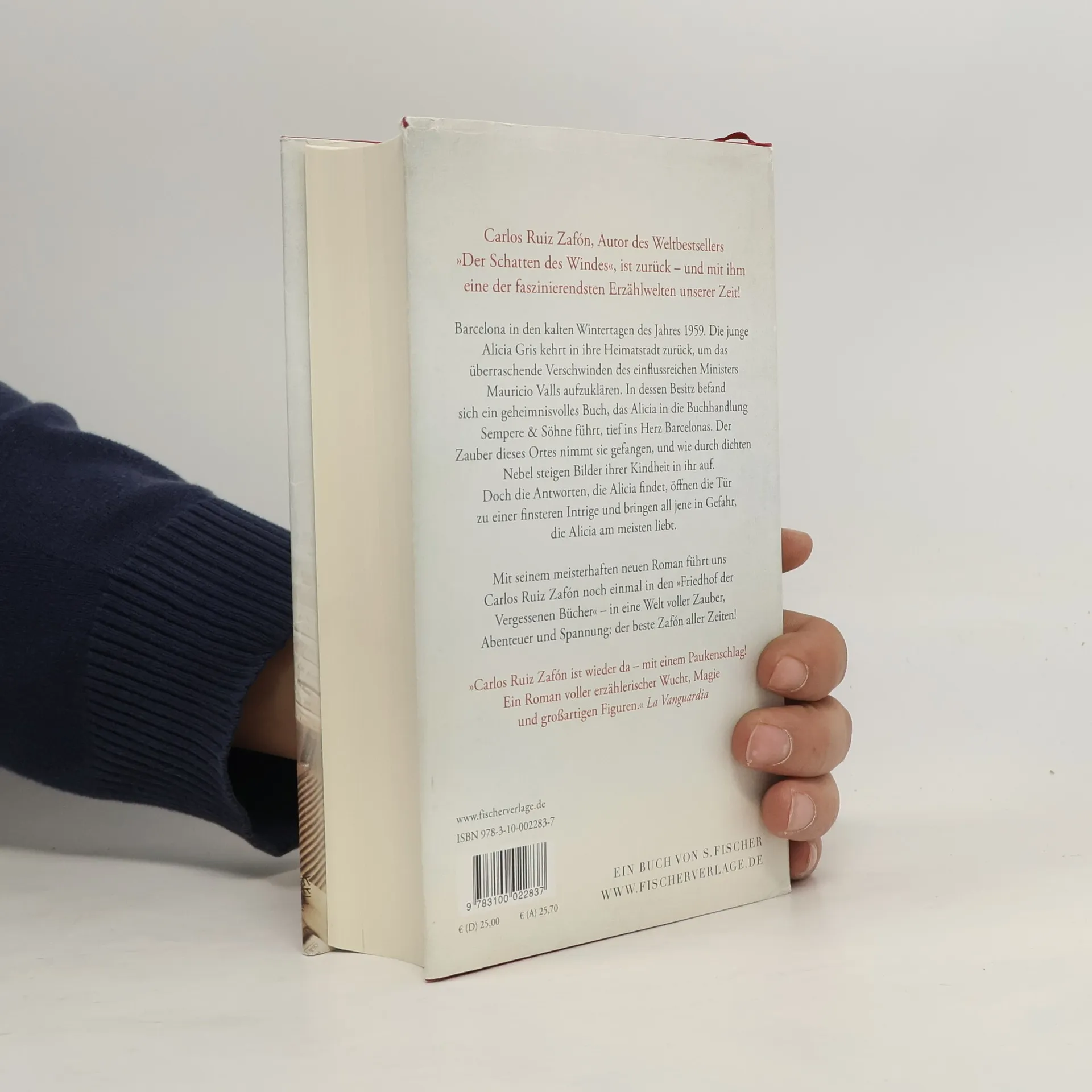 Packend, rasant und voller Magie – der neue Zafón! Carlos Ruiz Zafón, bekannt durch ›Der Schatten des Windes‹, kehrt zurück mit einem neuen Roman, der die faszinierende Welt rund um den Friedhof der Vergessenen Bücher weiterführt. In den düsteren Zeiten des Franco-Regimes wird die eigenwillige Alicia Gris von der Politischen Polizei beauftragt, das plötzliche Verschwinden des Ministers Mauricio Valls aufzuklären. Valls’ dunkle Vergangenheit als Direktor des Gefängnisses von Montjuïc holt ihn ein, und ein geheimnisvolles Buch aus der Serie ›Das Labyrinth der Lichter‹ erinnert Alicia schmerzhaft an ihr eigenes Schicksal. Ihre Suche führt sie zur Buchhandlung Sempere & Söhne, wo die Magie des Ortes sie in ihren Bann zieht und Erinnerungen an ihre Kindheit wachruft. Doch die Antworten, die sie dort findet, bringen nicht nur ihr eigenes Leben in Gefahr, sondern auch das der Menschen, die sie liebt. Zafón verknüpft meisterhaft die Erzählfäden seiner Bestseller und bietet ein spannendes Finale, das die Leser fesseln wird.