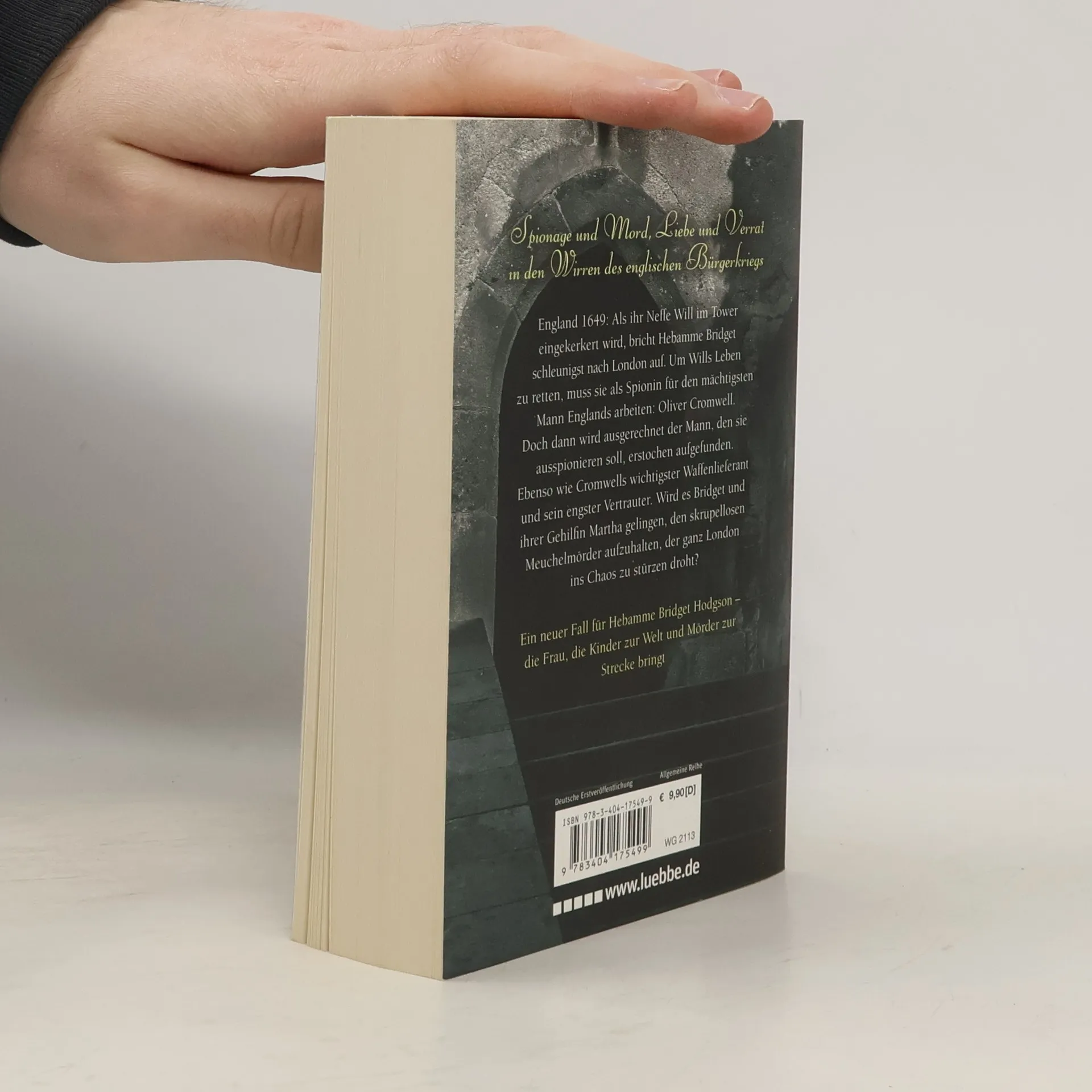 Spionage und Mord, Liebe und Verrat in den Wirren des englischen Bürgerkriegs England 1649: Als ihr Neffe Will im Tower eingekerkert wird, bricht Hebamme Bridget schleunigst nach London auf. Um Wills Leben zu retten, muss sie als Spionin für den mächtigsten Mann Englands arbeiten: Oliver Cromwell. Doch dann wird ausgerechnet der Mann, den sie ausspionieren soll, erstochen aufgefunden. Ebenso wie Cromwells wichtigster Waffenlieferant und sein engster Vertrauter. Wird es Bridget und ihrer Gehilfin Martha gelingen, den skrupellosen Meuchelmörder aufzuhalten, der ganz London ins Chaos zu stürzen droht? Ein neuer Fall für Hebamme Bridget Hodgson - die Frau, die Kinder zur Welt und Mörder zur Strecke bringt