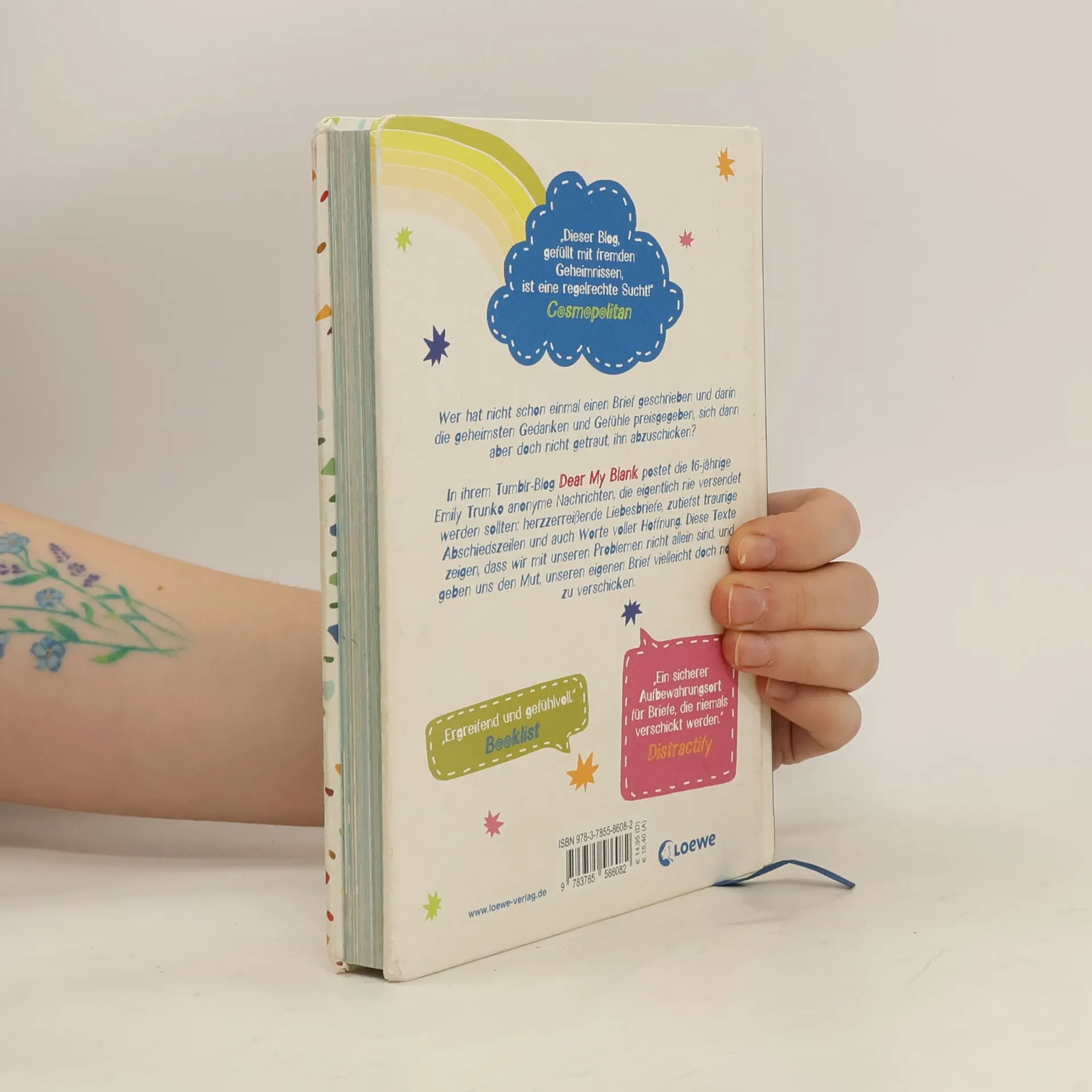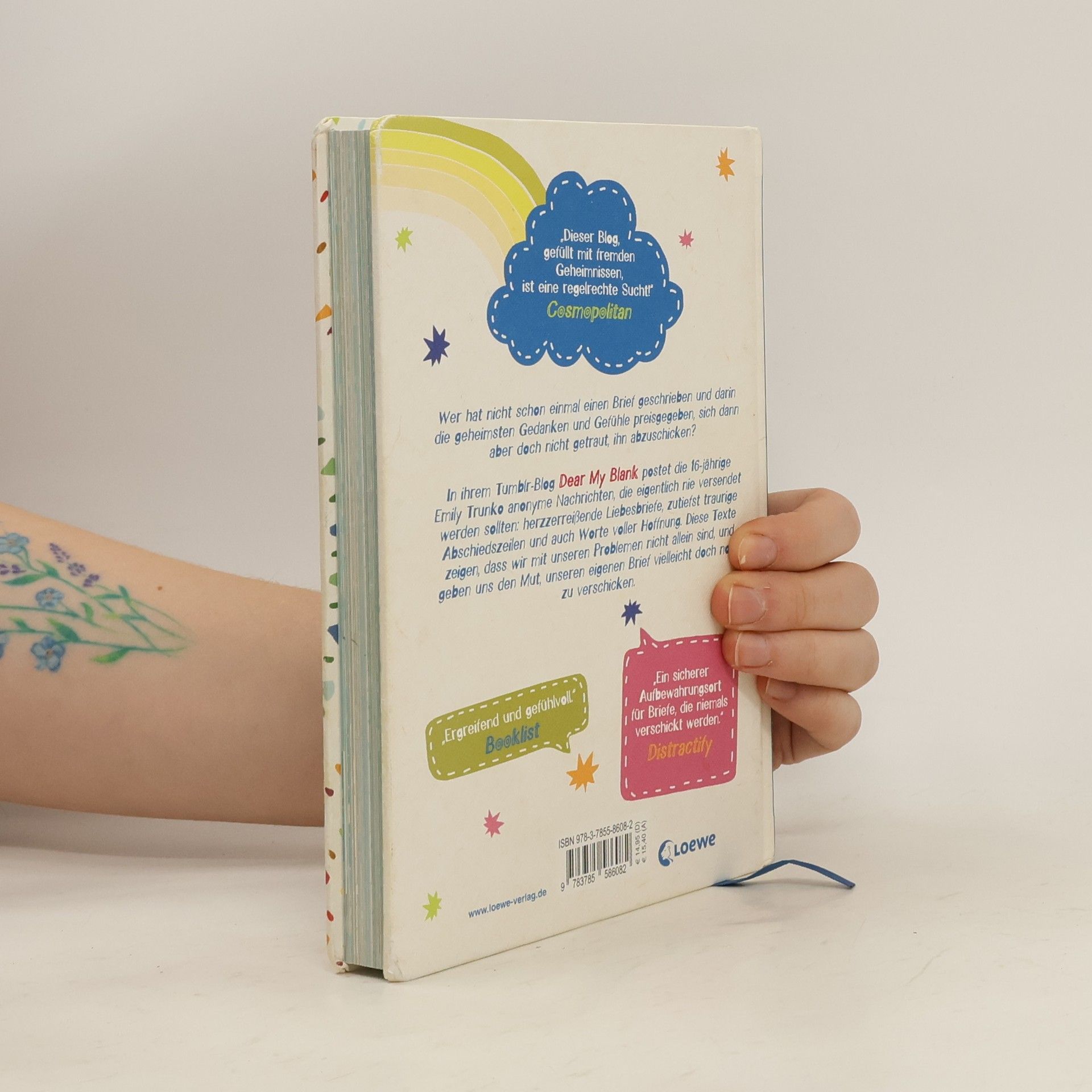 Das Buch ist bei deiner Buchhandlung vor Ort und bei vielen Online-Buchshops erhältlich! Wer hat nicht schon einmal einen Brief geschrieben und darin die geheimsten Gedanken und Gefühle preisgegeben, sich dann aber doch nicht getraut, ihn abzuschicken? Die Social Media-Sensation aus den USA! Bisher unveröffentlichte Beiträge des beliebten Tumblr-Blogs Dear My Blank werden in diesem einzigartigen Geschenkbuch vereint. Die liebevollen Illustrationen, das wunderschöne Handlettering und die zutiefst bewegenden Worte machen diese Sammlung zu einem ganz besonderen Jugendbuch, das lange im Gedächtnis bleiben wird. In ihrem Tumblr-Blog Dear My Blank postet die 16-jährige Emily Trunko anonyme Briefe, Nachrichten und E-Mails der mehr als 35.000 Leser ihres Blogs, die eigentlich nie versendet werden sollten: herzzerreißende Liebesbriefe, zutiefst traurige Abschiedszeilen und auch Worte voller Hoffnung. Diese Texte zeigen, dass wir mit unseren Problemen nicht allein sind, und geben uns den Mut, unseren eigenen Brief vielleicht doch noch zu verschicken. „Dieser Blog, gefüllt mit fremden Geheimnissen, ist eine regelrechte Sucht!“ Cosmopolitan