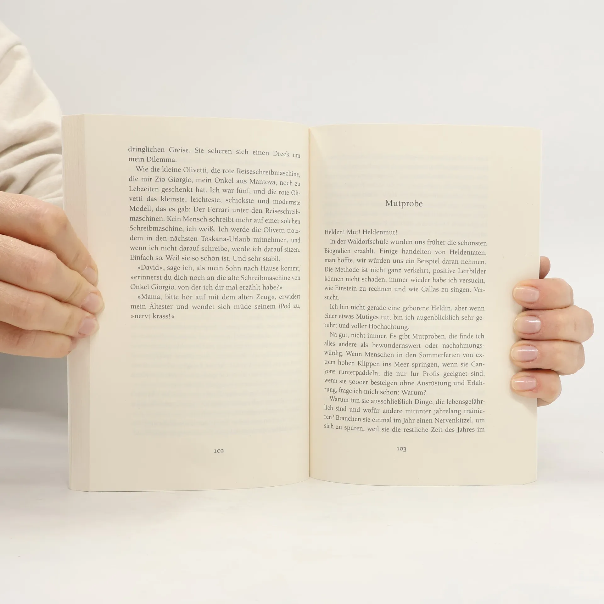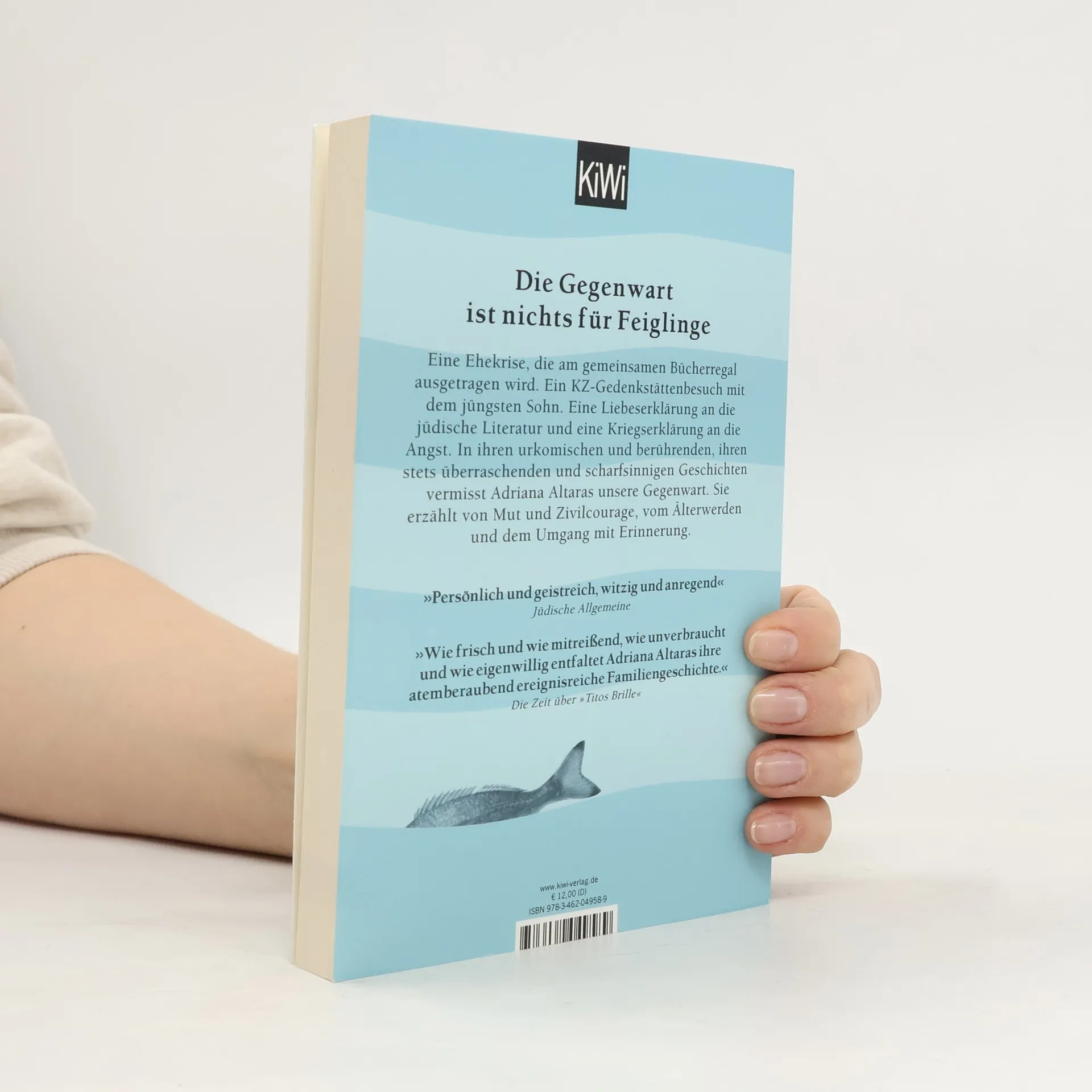 Die Gegenwart ist nichts für Feiglinge Eine Ehekrise, die am gemeinsamen Bücherregal ausgetragen wird. Ein KZ-Gedenkstättenbesuch mit dem jüngsten Sohn. Eine Liebeserklärung an die jüdische Literatur und eine Kriegserklärung an die Angst. In ihren urkomischen und berührenden, ihren stets überraschenden und scharfsinnigen Geschichten vermisst Adriana Altaras unsere Gegenwart. Sie erzählt von Mut und Zivilcourage, vom Älterwerden und dem Umgang mit Erinnerung. Von Nachhilfestunden in türkischer Geschichte beim Fischhändler ihres Vertrauens und davon, warum sie nie bereuen wird, Kinder zu haben. Im familiären Alltag, in kurzen zwischenmenschlichen Begegnungen, im Film, der Literatur und dem Theater spürt sie in ihrem unvergleichlich charmanten und mitreißenden Ton den existenziellen Fragen nach, die uns alle angehen.