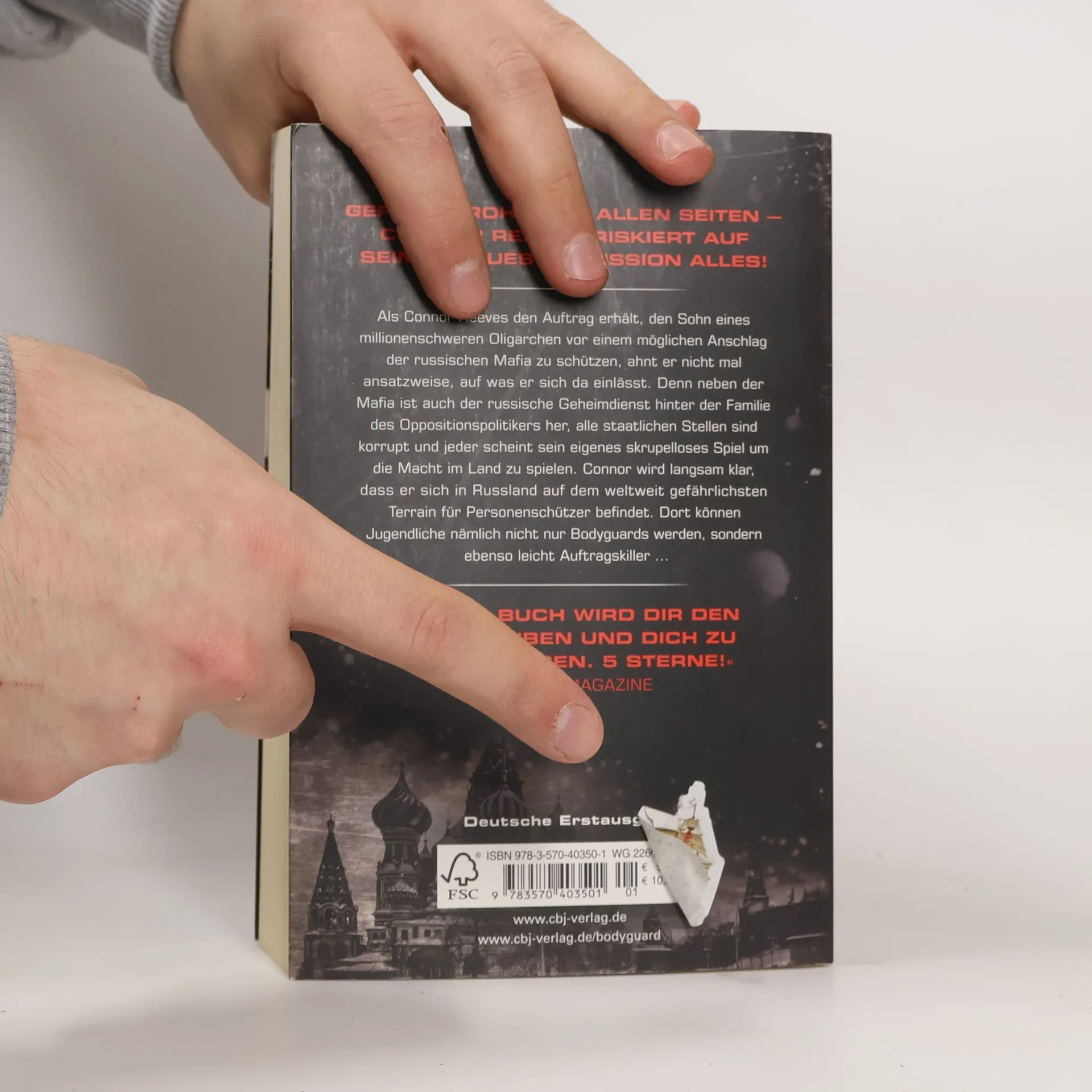 Im Fadenkreuz der Mafia Als Connor Reeves den Auftrag erhält, den Sohn eines millionenschweren Oligarchen vor einem möglichen Anschlag der russischen Mafia zu schützen, ahnt er nicht mal ansatzweise, auf was er sich da einlässt. Denn neben der Mafia ist noch eine Geheimorganisation hinter der Familie des Oppositionspolitikers her, alle staatlichen Stellen sind korrupt und jeder scheint sein eigenes skrupelloses Spiel um die Macht im Land zu spielen. Connor wird langsam klar, dass er sich in Russland auf dem weltweit gefährlichsten Terrain für Personenschützer befindet. Dort können Jugendliche nämlich nicht nur Bodyguards werden, sondern ebensoleicht Auftragskiller ... Erfolgsgarant Chris Bradford liefert mit „Bodyguard“ kugelsichere Action kombiniert mit explosiven Showdowns.