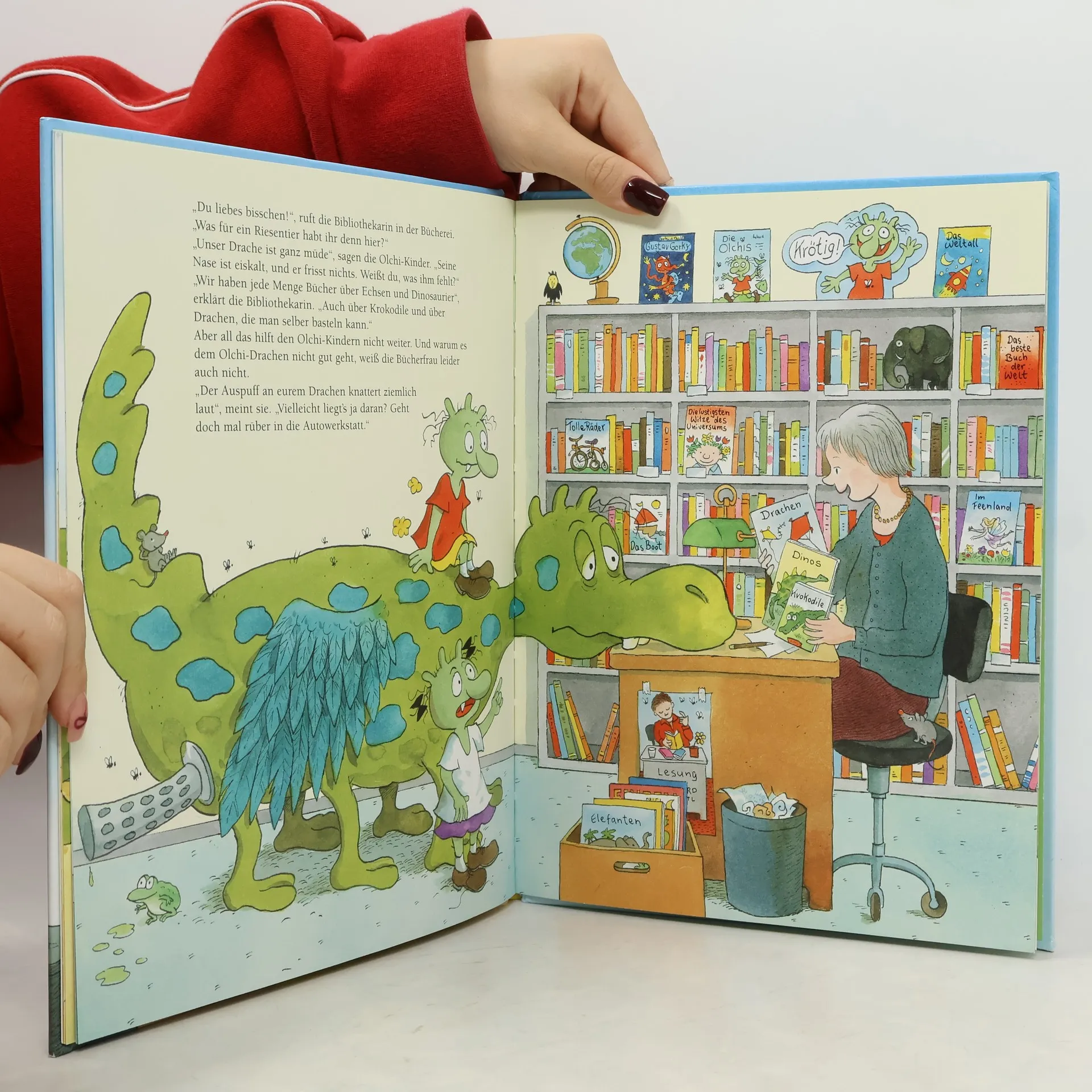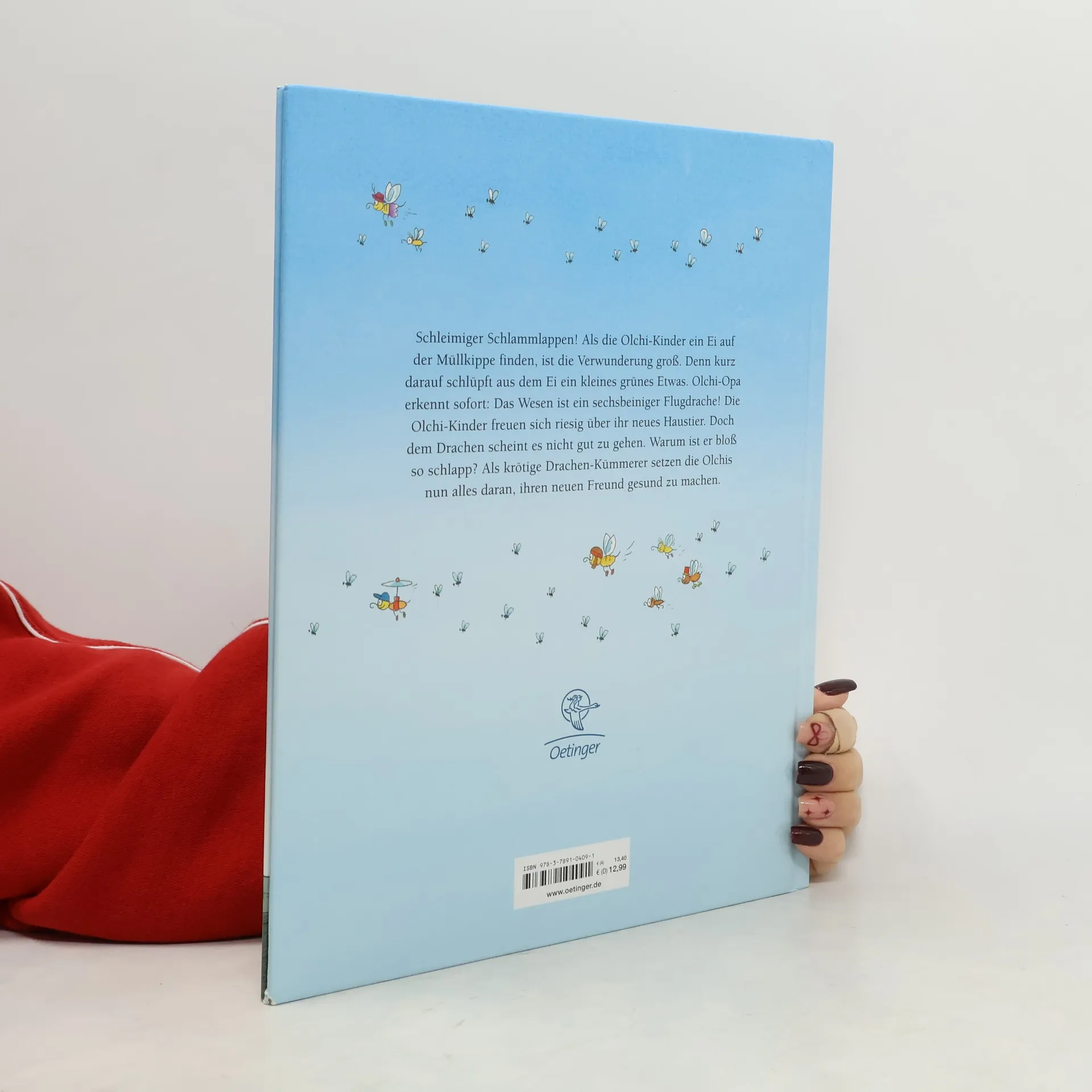 Schleimige Stinkesocke! Ist das ein Drachenei? Die Olchi-Kinder finden auf ihrer Müllkippe ein großes, grünes Ei, aus dem kurz darauf ein grünes Wesen schlüpft: ein Flugdrache. Man beschließt, ihn zu behalten. Als er krank wird, tun die Olchis alles, damit er wieder auf die Füße kommt. Nichts hilft. Erst als der Drache in den Schmuddelteich fällt und dort literweise Schmuddelbrühe schlabbert, ist klar, was ihm gefehlt hat. Als er dann auch noch Olchi-Omas Stuhl in Brand setzt, sind sich alle einig, wie er heißen soll: Feuerstuhl. Wie kam Feuerstuhl zu den Olchis? Hier ist die Antwort! Das Sehnsuchtsthema Haustier typisch olchig erzählt!