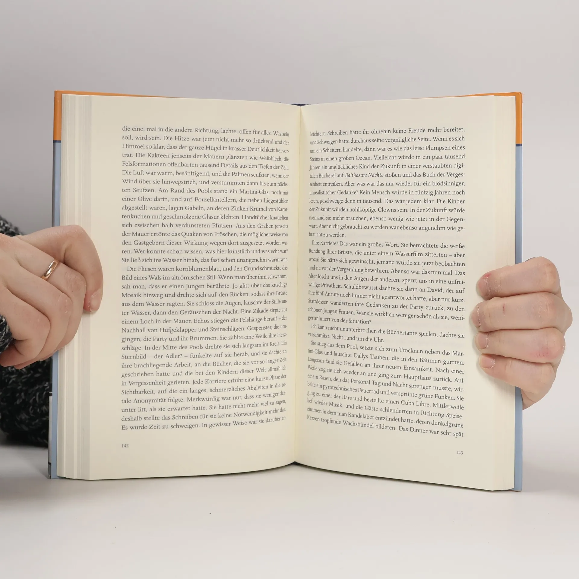 In einer träumerischen Landschaft inmitten der Wüste Marokkos veranstalten Richard und Dally für ihre Freunde eine dreitägige extravagante Party im Gatsby- Stil, mit Kokain, Champagner, Pool und Feuerwerk. Auf dem Weg dorthin überfährt das britische Paar David und Jo, angetrunken und heillos zerstritten, einen Fossilienverkäufer am Straßenrand und möchte die Leiche am liebsten verschwinden lassen. Aber da taucht die Familie des Opfers auf und verlangt Davids Anwesenheit bei der Beerdigung in einem abgelegenen Dorf, während Jo sich weiter auf der ausgelassenen Party vergnügt. Die strebt ungebrochen ihrem Höhepunkt zu – unter den argwöhnischen Augen des Hausangestellten Hamid. Lawrence Osborne seziert seine Figuren gnadenlos, ihre Persönlichkeit und ihre Beziehungen, erfindet eindrückliche, filmische Szenen und schwankt in seiner feinen Schreibweise zwischen Zärtlichkeit und Zynismus.