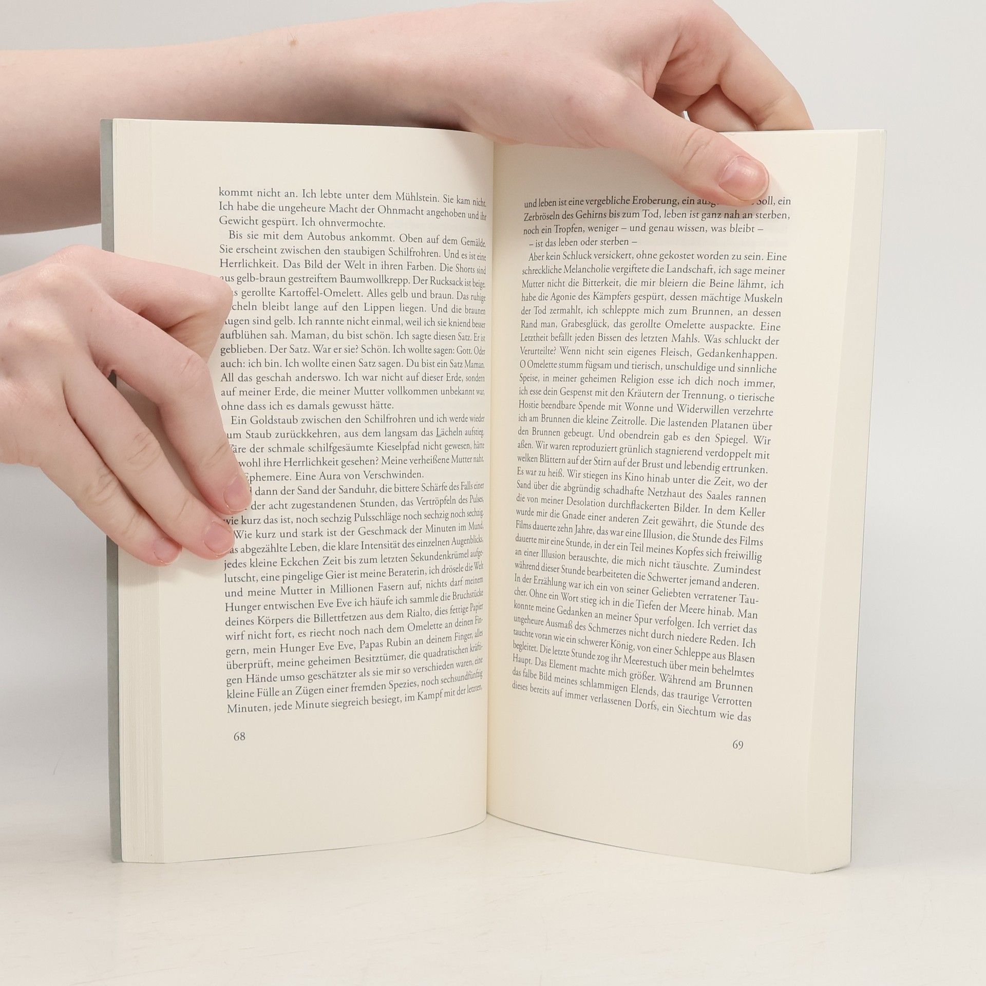 „Es geht um das Leben meiner Mutter, in Wahrheit, ums Leben, darum zu leben, von ihrem Überleben zu leben und sogar, was noch mehr ist, um ihr Überleben, ihre Weisen, sich selbst zu überleben und die Zeit.“In diesem Buch erkundet Hélène Cixous erstmals die facettenreiche Persönlichkeit ihrer Mutter, die in vielen ihrer nachfolgenden Werke einen wichtigen Platz einnimmt und deren Geburtsort Osnabrück, Stadt des Westfälischen Friedens, dem Band seinen Namen leiht. „Vor langer Zeit bereits ist dieses Buch aufgebrochen, Monate, Straßen, lang wie Nächte in fremden Ländern, ohne Züge, Städte in allen Größen, seit ein oder zwei Jahren durchwandert es das Mysterium der Zeiten auf den vier Kontinenten, die die Geschichte meiner Mutter tragen und sie gleichermaßen interessieren. [...] Doch bald schon entdeckte ich, dass es ein Kampf werden würde, dies Buch gegen sich selbst, und genauer noch ein Kampf meiner Mutter gegen meine Mutter, ich präzisiere: von Maman gegen meine Mutter und noch genauer ein in meiner Mutter selbst geführter Kampf, der sich über die ganze Erde hin erstreckte – die Erde, die sie ist –, zwischen Maman, meiner Mutter, Eve, unserer Mutter, Eva, Eva Klein, der Verlobten meines Vaters, und Eve Cixous, Hebamme, ein unausgesetzter Kampf so lebensnotwendig und stetig wie Herzschlag und Atem.“