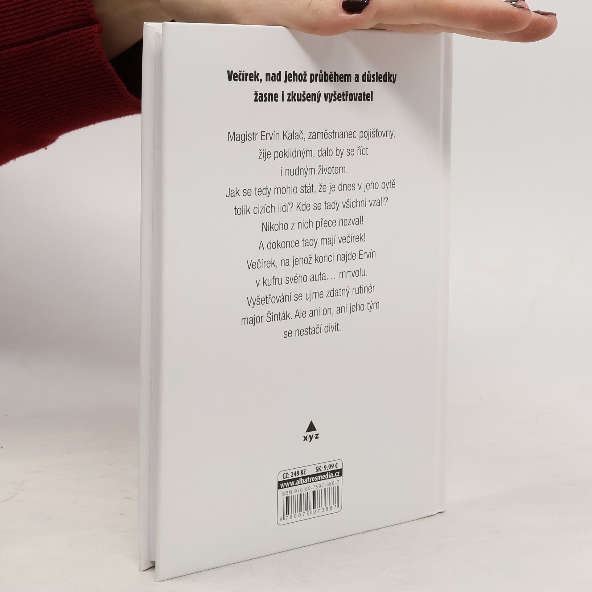 Magistr Ervín Kalač, zaměstnanec pojišťovny, žije poklidným, dalo by se říct i nudným životem. Jak se tedy mohlo stát, že je dnes v jeho bytě tolik cizích lidí? Kde se tady všichni vzali? Nikoho z nich přece nezval! A dokonce tady mají večírek! Večírek, na jehož konci najde Ervín v kufru svého auta… mrtvolu. Vyšetřování se ujme zdatný rutinér major Šinták. Ale ani on, ani jeho tým, se nestačí divit.