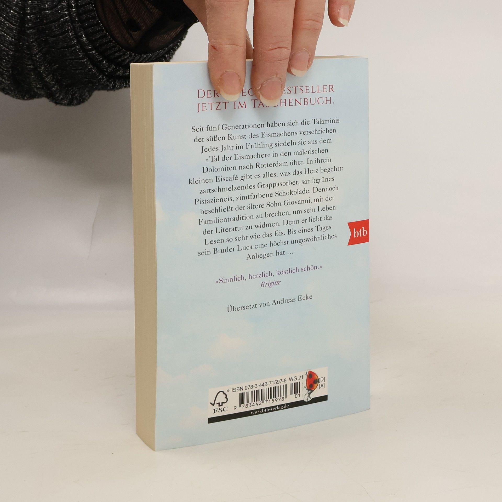 Wenn Liebe auf der Zunge zergeht. Inmitten der malerischen Dolomiten liegt das Tal der Eismacher. Giuseppe Talamini behauptet gar, die Eiscreme wurde hier erfunden. Und er muss es wissen, schließlich haben sich die Talaminis seit Generationen dieser Handwerkskunst verschrieben. Jedes Jahr im Frühling siedeln sie nach Rotterdam über, wo sie während der Sommermonate ein kleines Eiscafé betreiben. Hier gibt es alles, was das Herz begehrt: zartschmelzendes Grappasorbet, sanftgrünes Pistazieneis, zimtfarbene Schokolade. Dennoch beschließt der ältere Sohn Giovanni, mit der Familientradition zu brechen, um sein Leben der Literatur zu widmen. Bis ihn eines Tages sein Bruder aufsucht: Luca, der das Eiscafé übernommen hat, ist inzwischen mit Sophia verheiratet, in die beide Brüder einst unsterblich verliebt waren. Und er hat eine ungewöhnliche Bitte …