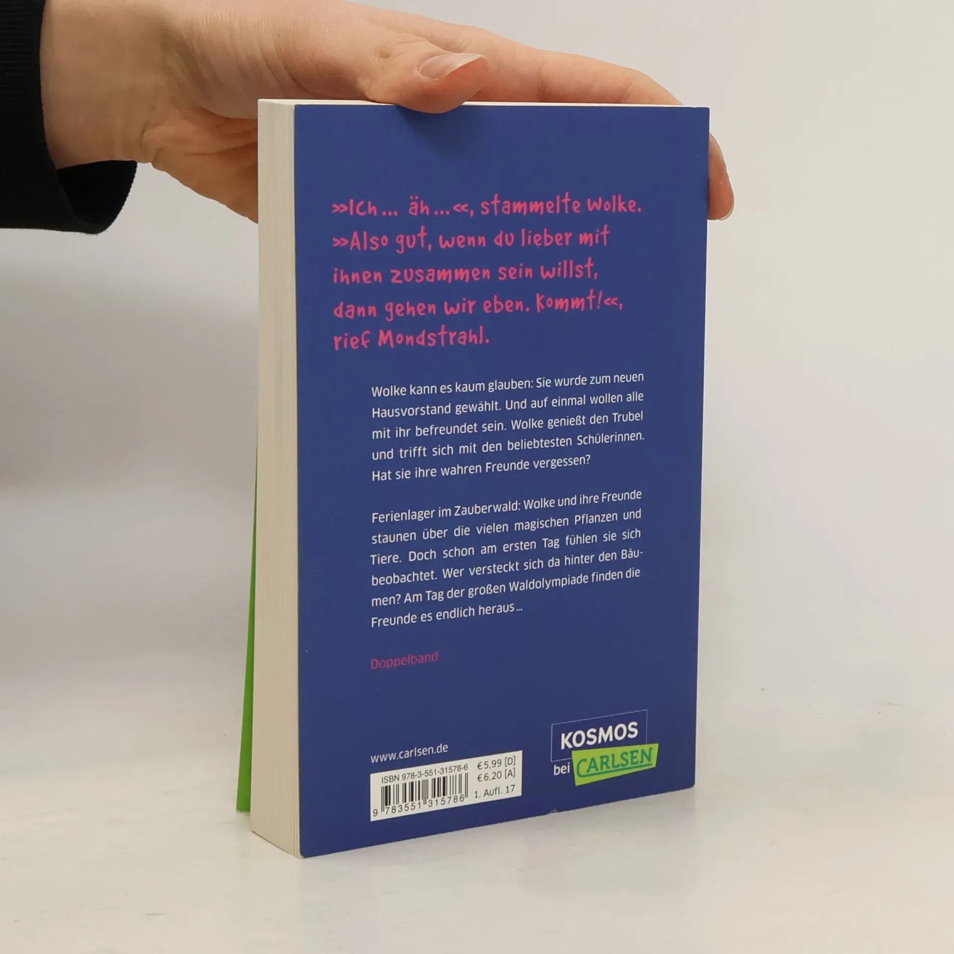 Wolke kann es kaum glauben: Sie wurde zum neuen Hausvorstand gewählt. Und auf einmal wollen alle mit ihr befreundet sein. Wolke genießt den Trubel und trifft sich mit den beliebtesten Mädchen der Schule. Saphira, Sturmwind und Mondstrahl sieht sie immer seltener. Hat Wolke ihre wahren Freunde vergessen? Ferienlager im Zauberwald: Wolke und ihre Freunde staunen über die vielen magischen Pflanzen und Tiere. Doch schon am ersten Tag fühlen sie sich beobachtet. Wer versteckt sich da hinter den Bäumen? Am Tag der großen Waldolympiade finden die Freunde es endlich heraus …