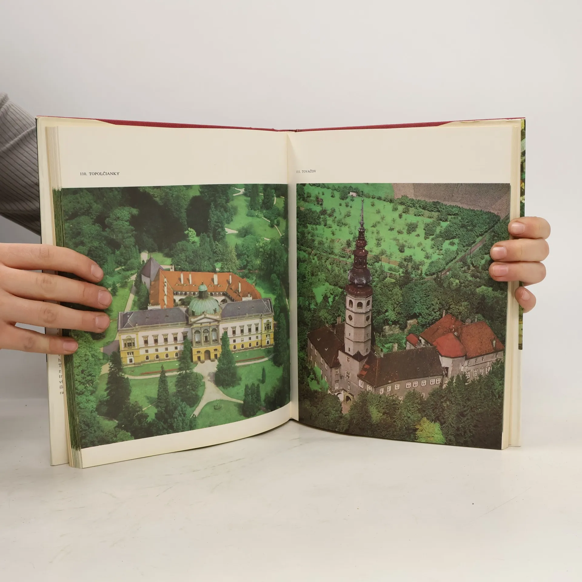 Celkem 128 hradů a zámků z Čech, Moravy i Slovenska je na barevných fotografických záběrech, pořízených z letecké perspektivy. Obrazové části, podrobené abecednímu pořádku, byl předeslán kratší obecný úvod a po ní jsou uvedenystručné historické poznámky ke každému zobrazenému objektu. Krásná uskupení stavebních a krajinných komponent jsou někde výsledkem bezděčného doplňování nebo přirozených kontrastů, jinde svědectvím vědomého lidského zásahu. Textem doprovází známá archeoložka Dobroslava Menclová.