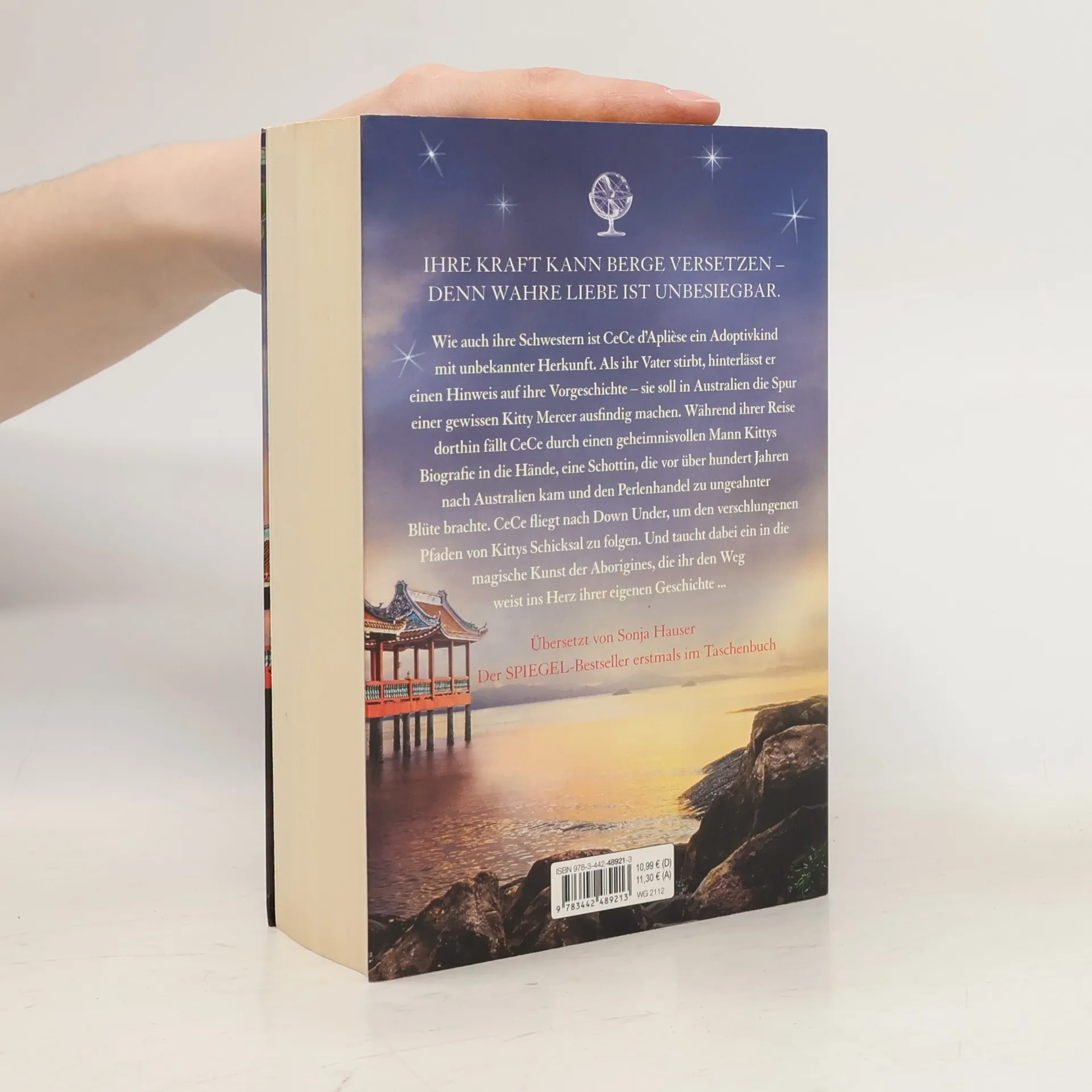 Die große Saga von Bestsellerautorin Lucinda Riley. Wie auch ihre Schwestern ist CeCe d'Aplièse ein Adoptivkind mit unbekannter Herkunft. Als ihr Vater stirbt, hinterlässt er einen Hinweis auf ihre Vorgeschichte – sie soll in Australien die Spur einer gewissen Kitty Mercer ausfindig machen. Während ihrer Reise dorthin fällt CeCe durch einen geheimnisvollen Mann Kittys Biografie in die Hände, eine Schottin, die vor über hundert Jahren nach Australien kam und den Perlenhandel zu ungeahnter Blüte brachte. CeCe fliegt nach Down Under, um den verschlungenen Pfaden von Kittys Schicksal zu folgen. Und taucht dabei ein in die magische Kunst der Aborigines, die ihr den Weg weist ins Herz ihrer eigenen Geschichte ... Der vierte Band aus der Bestseller-Serie um die sieben Schwestern.