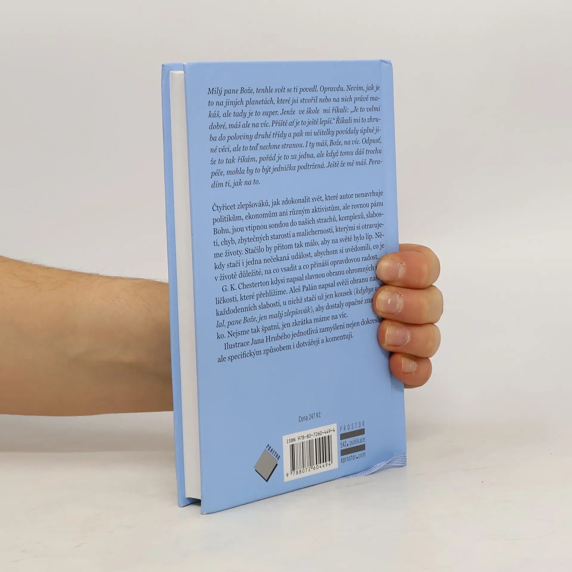 Milý pane Bože, tenhle svět se ti povedl. Opravdu. Nevím, jak je to na jiných planetách, které jsi stvořil nebo na nich právě makáš, ale tady je to super. Jenže ve škole mi říkali: „Je to velmi dobré, máš ale na víc. Příště ať je to ještě lepší.“ Říkali mi to zhruba do poloviny druhé třídy a pak mi učitelky povídaly úplně jiné věci, ale to teď nechme stranou. I ty máš, Bože, na víc. Odpusť, že to tak říkám, pořád je to za jedna, ale když tomu dáš trochu péče, mohla by to být jednička podtržená. Ještě že mě máš. Poradím ti, jak na to. Čtyřicet zlepšováků, jak zdokonalit svět, které autor nenavrhuje politikům, ekonomům ani různým aktivistům, ale rovnou pánu Bohu, jsou vtipnou sondou do našich strachů, komplexů, slabostí, chyb, zbytečných starostí a malicherností, kterými si otravujeme životy. Stačilo by přitom tak málo, aby na světě bylo líp. Někdy stačí i jedna nečekaná událost, abychom si uvědomili, co je v životě důležité, na co vsadit a co přináší opravdovou radost. G. K. Chesterton kdysi napsal slavnou obranu ohromných maličkostí, které přehlížíme. Aleš Palán napsal svěží obranu našich každodenních slabostí, u nichž stačí už jen kousek (kdybys udělal, pane Bože, jen malý zlepšovák), aby dostaly opačné znaménko. Nejsme tak špatní, jen zkrátka máme na víc. Ilustrace Jana Hrubého jednotlivá zamyšlení nejen dokreslují, ale specifickým způsobem i dotvářejí a komentují.