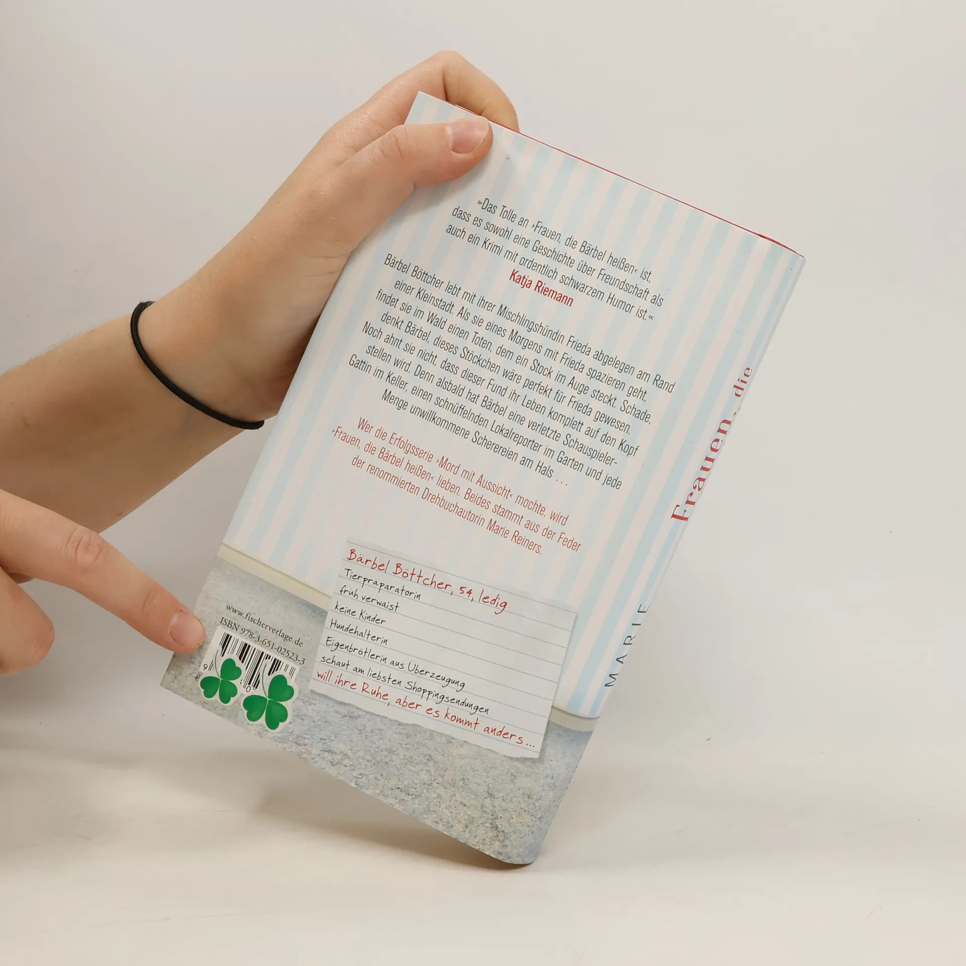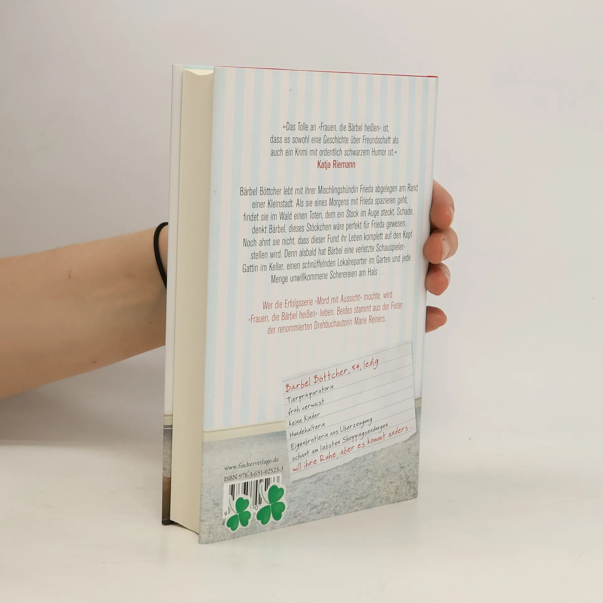 »Das Tolle an ›Frauen, die Bärbel heißen‹ ist, dass es sowohl eine Geschichte über Freundschaft als auch ein Krimi mit ordentlich schwarzem Humor ist.« Katja Riemann »Bärbel Böttcher, diese ledige, melancholische und eigenbrötlerische Frauenfigur von Marie Reiners, nimmt mich mit auf eine skurrile zwerchfelltrainierende Lesereise. Genial überraschend! So wie Bärbels eben sind.« Bärbel Schäfer Bärbel Böttcher, 54, ledig, keine Kinder, von Beruf Tierpräparatorin, lebt mit ihrer Mischlingshündin Frieda im Haus ihrer toten Eltern abgelegen am Rand einer Kleinstadt. Sie hat weder Familie noch Freunde, und das ist gut so, denn Bärbel ist Eigenbrötlerin aus Überzeugung. Als sie eines Morgens mit Frieda spazieren geht, findet sie im Wald einen Toten, dem ein Stock im Auge steckt. Nachdem Bärbel wohl oder übel die Polizei verständigt und ihre Aussage gemacht hat, ist sie froh, wieder zu Haus auf dem Sofa zu sitzen und ihrer Lieblingsbeschäftigung nachzugehen: Verkaufssendungen im Shoppingkanal schauen. Bis es an der Tür klingt. Was es sonst nie tut. Und vor Bärbel eine Frau steht, die behauptet, die Ehefrau des Opfers zu sein und die Bärbel im nächsten Moment wenig charmant mit einem Elektroschocker außer Gefecht gesetzt hat. Dass das erst der Anfang allerlei sich überschlagender Ereignisse war, wird Bärbel schnell klar. Denn alsbald hat sie eine verletzte Schauspieler-Gattin (die Frau des Toten im Wald) im Keller, einen schnüffelnden Lokalreporter im Garten und unwillkommene Scherereien am Hals. Vorbei ist es mit dem beschaulichen Einsiedlerdasein, und Bärbel bleibt nichts anderes übrig, als sich auf die neue Situation einzulassen. Was Erfahrungen wie Enthüllungen ungeahnten Ausmaßes nach sich ziehen wird ... Wer die Erfolgsserie »Mord mit Aussicht« mochte, wird auch an »Frauen, die Bärbel heißen« großen Spaß haben. Beides stammt aus der Feder von Drehbuchautorin Marie Reiners, ist skurril, frisch, voller Esprit, originell und manchmal ein bisschen böse.