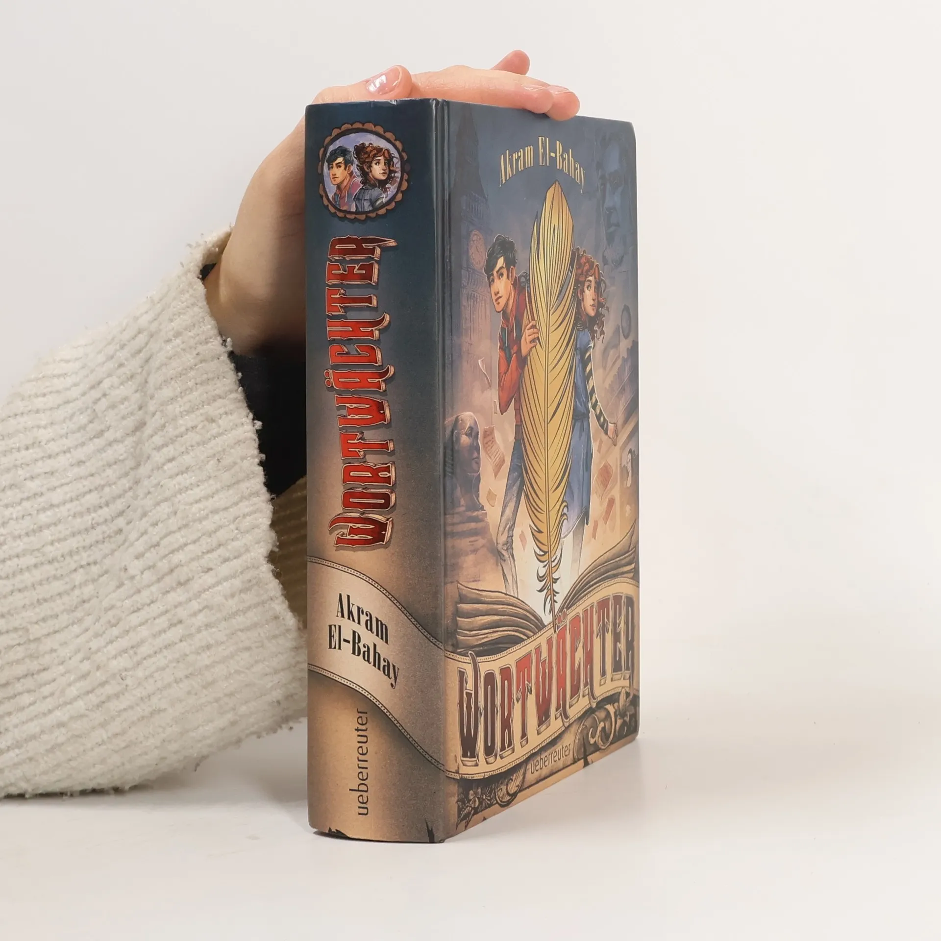 Im verwinkelten Anwesen seines Onkel David gibt es weder Internet noch einen Fernseher, nur jede Menge Bücher – absolut langweilig, findet Tom. Da stößt er im Keller auf etwas höchst Seltsames: eine Buchseite, auf der wie von Zauberhand Worte erscheinen und wieder verschwinden. Sie scheinen genau das zu erzählen, was er gerade sieht, denkt oder tut – und warnen ihn, sich rasch zu verstecken. Tatsächlich: Im selben Moment erscheint ein Fremder und entführt Toms Onkel. Ehe er sich’s versieht, steckt Tom in einem Abenteuer, in dem ein alter Geheimbund, die Statuen berühmter Autoren und ein lesehungriges Mädchen eine große Rolle spielen. Vier Rätsel muss er lösen und an weit verstreuten Orten vier Teile einer mächtigen goldenen Feder finden, um großes Unheil zu vermeiden und Onkel David zu retten …