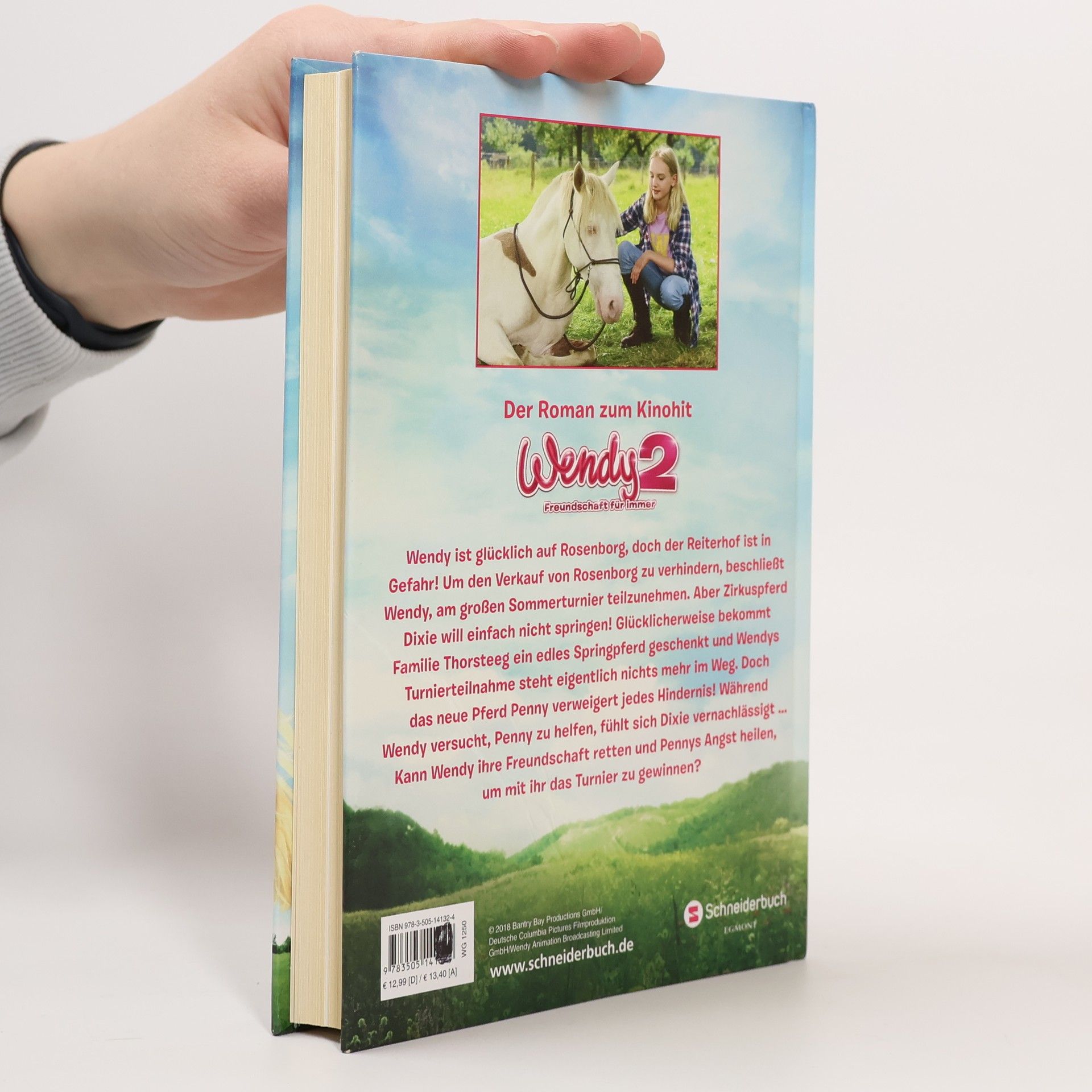 Wendy ist glücklich auf Rosenborg, doch der Reiterhof ist in Gefahr! Um den Verkauf von Rosenborg zu verhindern, will Wendy am großen Sommerturnier teilnehmen. Aber Zirkuspferd Dixie will einfach nicht springen! Glücklicherweise bekommt Familie Thorsteeg ein edles Springpferd geschenkt und Wendys Turnierteilnahme steht eigentlich nichts mehr im Weg. Doch das neue Pferd Penny verweigert jedes Hindernis! Während Wendy versucht, Penny zu helfen, fühlt sich Dixie zunehmend vernachlässigt … Kann Wendy ihre Freundschaft retten und Pennys Angst heilen, um mit ihr das Turnier zu gewinnen? Das Buch zum zweiten Wendy-Film