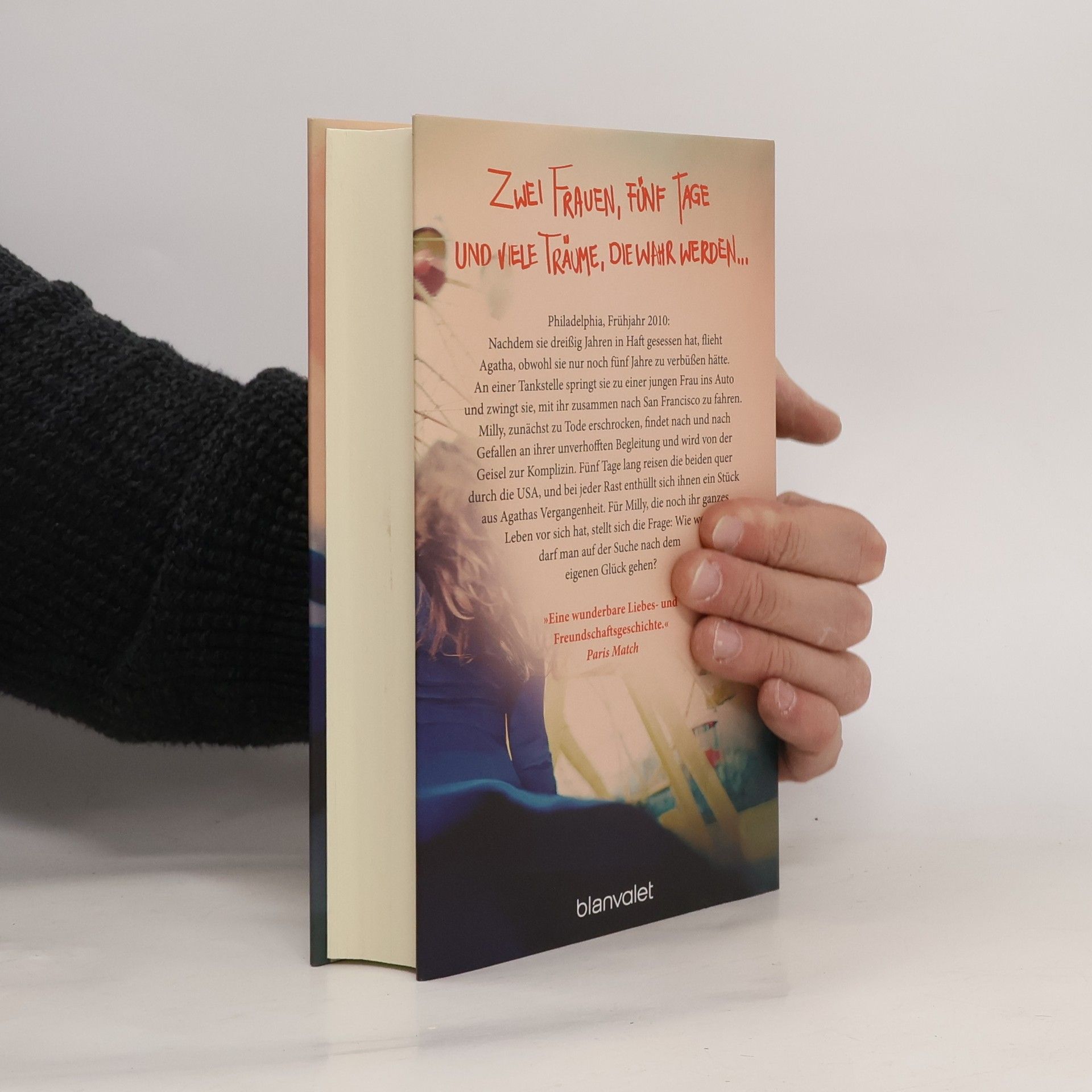 Wenn ein gewöhnliches Leben außergewöhnlich wird. Zwei Frauen, fünf Tage und viele Träume, die wahr werden ... Philadelphia, Frühjahr 2010: Nach dreißig Jahren Haft flieht Agatha aus dem Gefängnis, obwohl sie nur noch wenige Jahre zu verbüßen hätte. An einer Tankstelle springt sie zu einer jungen Frau ins Auto und zwingt sie mit vorgehaltener Waffe, mit ihr zusammen nach San Francisco zu fahren. Milly, zunächst zu Tode erschrocken, findet nach und nach Gefallen an ihrer unverhofften Begleitung und wird von der Geisel zur Komplizin. Fünf Tage lang reisen die beiden quer durch die USA, und für Milly, die noch das ganze Leben vor sich hat, stellt sich unweigerlich die Frage: Wie weit darf man auf der Suche nach dem eigenen Glück gehen?