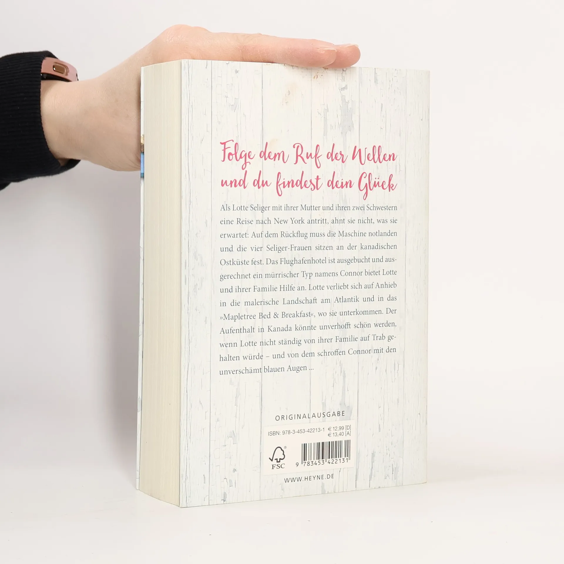 Folge dem Ruf der Wellen und du findest dein Glück! Als Lotte Seliger mit ihrer Mutter und ihren zwei Schwestern eine Reise nach New York antritt, ahnt sie nicht, was sie erwartet: Auf dem Rückflug muss die Maschine notlanden und die vier Seliger-Frauen sitzen an der kanadischen Ostküste fest. Lotte weiß nun nicht, ob sie es rechtzeitig zu ihrer Hochzeit nach Deutschland schaffen wird. Doch das ist noch nicht alles: Das Flughafenhotel ist ausgebucht und ausgerechnet ein mürrischer Typ namens Connor bietet Lotte und ihrer Familie Hilfe an. Lotte verliebt sich auf Anhieb in die malerische Landschaft am Atlantik und in das „Mapletree Bed & Breakfast“, wo sie unterkommen. Der Aufenthalt in Kanada könnte dank Blaubeermuffins, Strandspaziergängen und Muschelsuppe unverhofft schön werden, wenn Lotte nicht ständig von ihrer Familie auf Trab gehalten würde – und von dem schroffen Connor mit den unverschämt blauen Augen. Warum ist er ihr gegenüber bloß so unfreundlich? Als Lotte an einem stürmischen Nachmittag in Lebensgefahr gerät, ist ausgerechnet er zur Stelle …