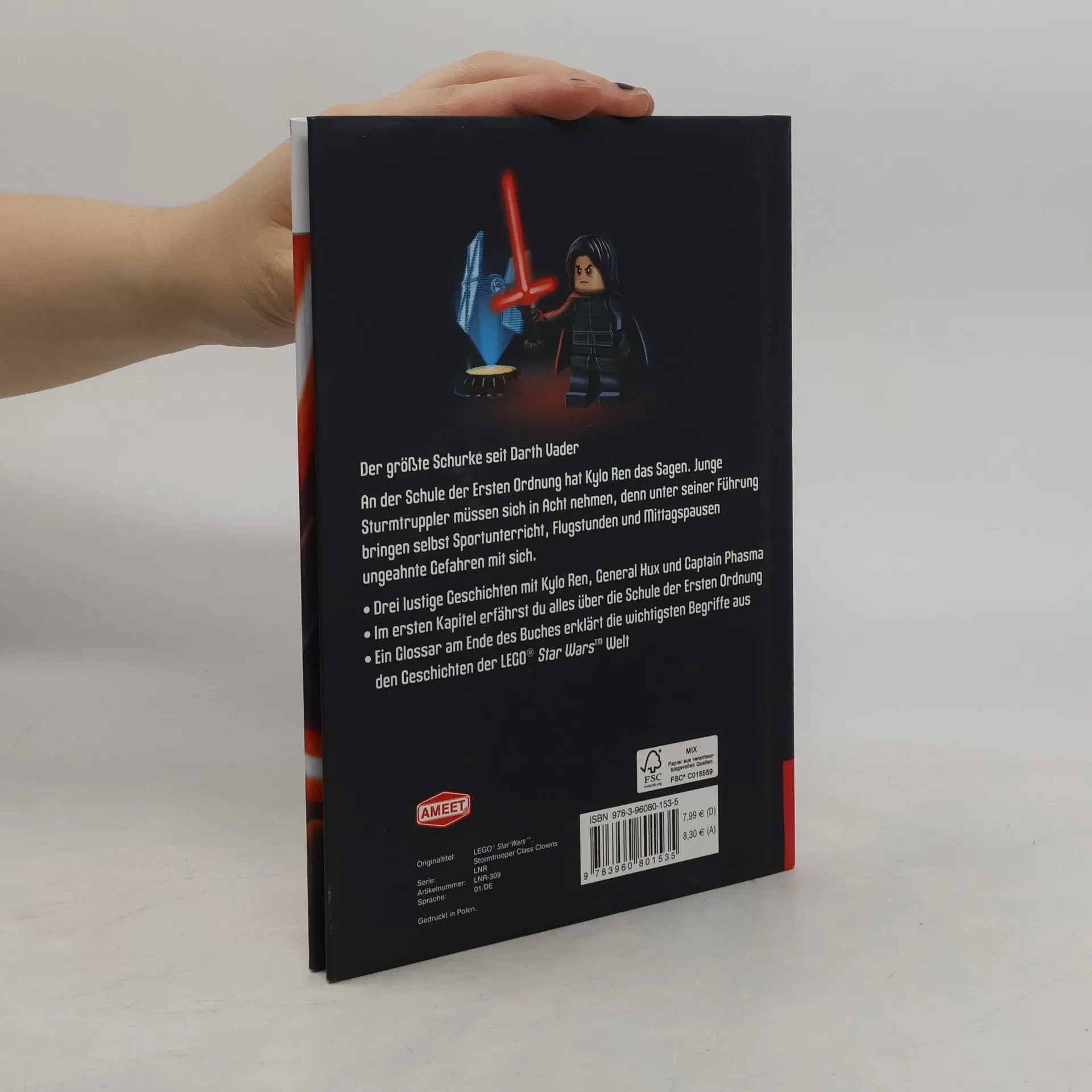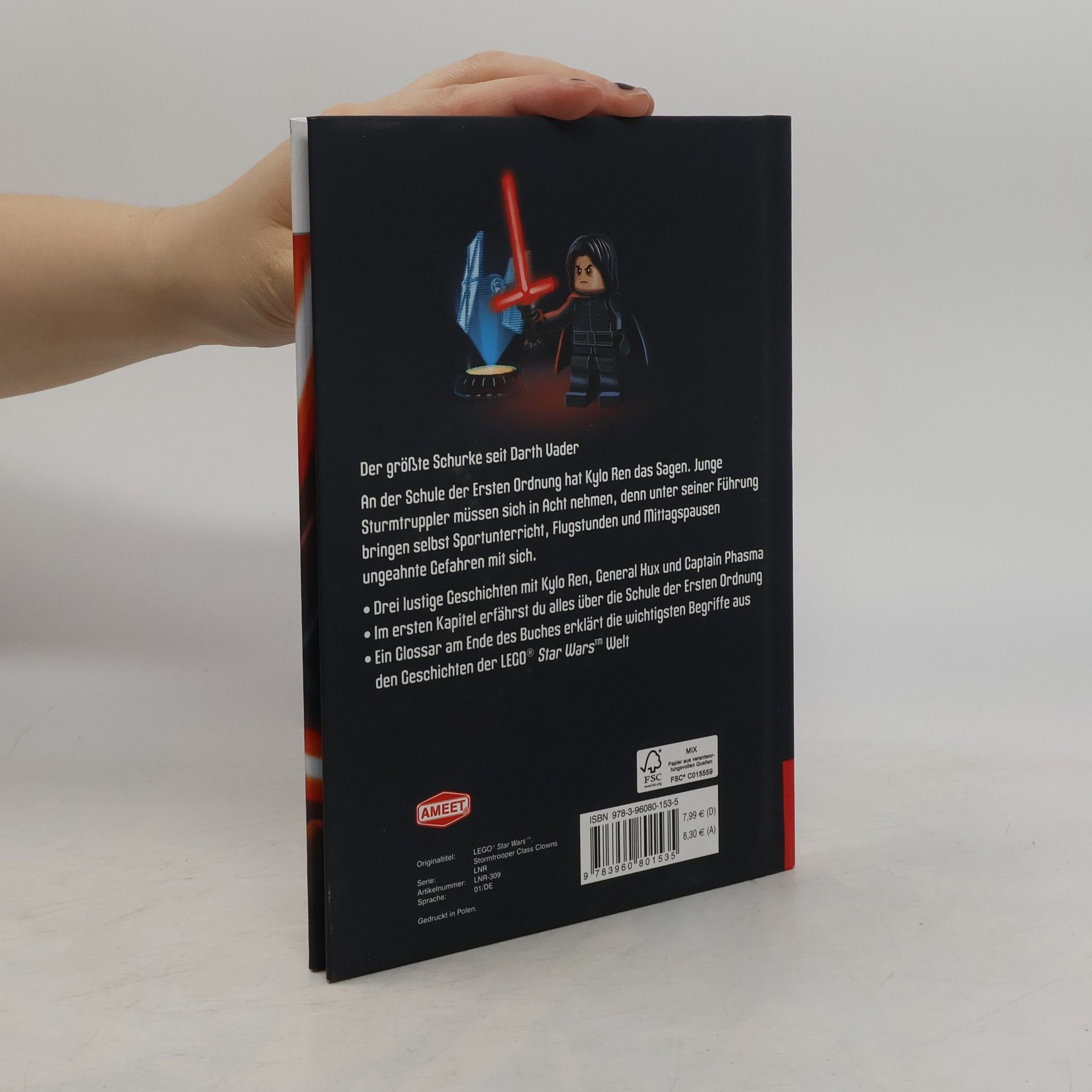 Der größte Schurke seit Darth Vader!Neue Abenteuer im Star Wars™ UniversumAn der Sturmtruppler-Schule hat kein geringerer als Kylo Ren das Sagen. Er ist bekannt für seinen kurzen Geduldsfaden, ganz wie sein Großvater Darth Vader. Für die jungen Sturmtruppler heißt das vor allem eins: Ärger. Neben Flugtraining, Drohnen-Völkerball und schlechtem Mensaessen müssen sie sich nicht nur mit dem Herrscher der Galaxis rumschlagen, sondern auch mit den anderen Fieslingen der Ersten Ordnung.Mit drei humorvollen Geschichten und der hochwertigen Gestaltung im bekannten LEGO® Stil, bietet das Lesebuch für Erstleser ein ganz besonderes Erlebnis. Jede Doppelseite ist mit detaillierten Illustrationen aus dem LEGO® Star Wars™ Universum versehen, die den Text auflockern. Einführung und Glossar helfen auch Star Wars™ Neulingen, sich schnell mit den Helden und Bösewichten der Galaxis vertraut zu machen. Kinostart Solo: A Star Wars Story: Mai 2018© & ™ 2018 LUCASFILM LTD. Used under authorization.LEGO, the LEGO logo, the Brick and Knob configurations and the Minifigure are trademarks of the LEGO Group.©2018 The LEGO Group.Produced by AMEET Sp. z o.o. under license from the LEGO Group.