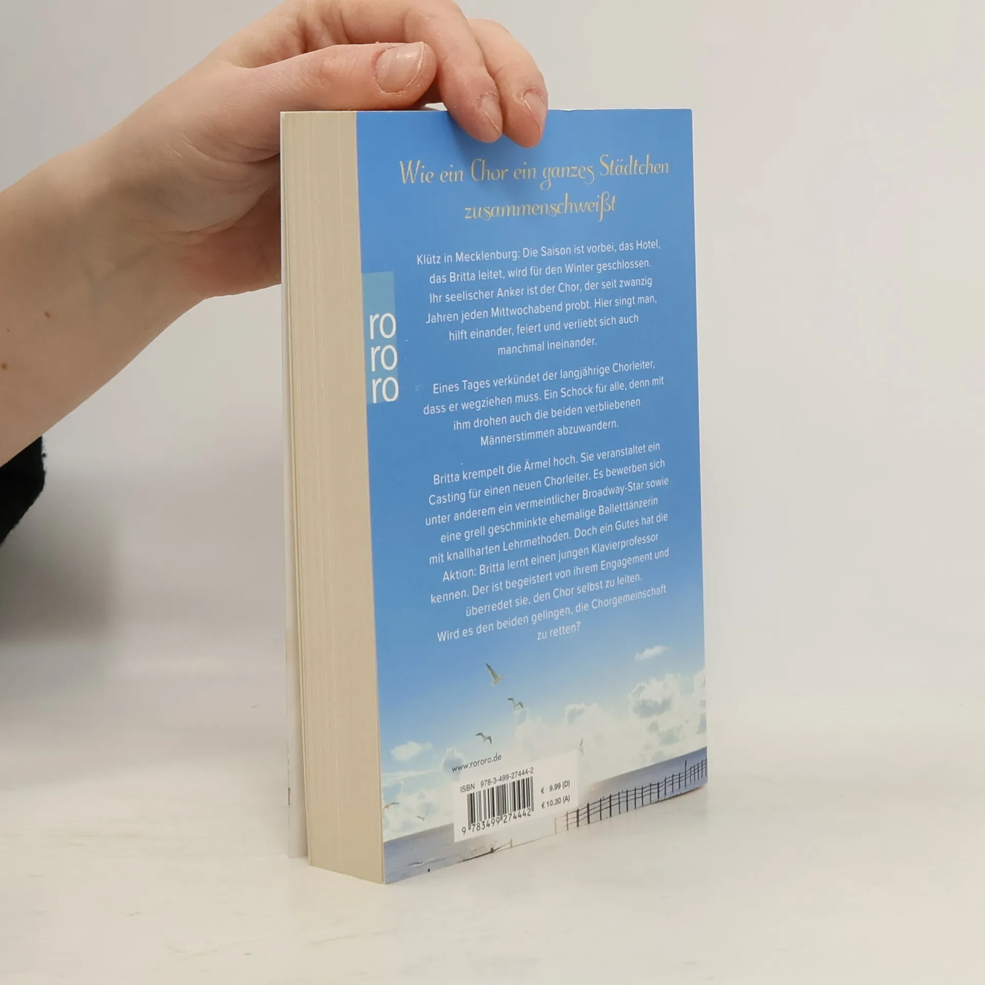 Klütz, ein kleiner Küstenort in Mecklenburg, ist der Schauplatz des neuen Romans von Bestsellerautor Janne Mommsen. Er erzählt von einer Musikliebhaberin voller Ideale, einem charmanten Klavierprofessor und einer Chorgemeinschaft, die auch in schwierigen Zeiten gemeinsam durch dick und dünn geht. Die Saison ist vorbei, das Hotel, das Britta leitet, wird für den Winter geschlossen. Ihr seelischer Anker ist der Chor, der seit zwanzig Jahren jeden Mittwochabend probt. Hier singt man, hilft einander, feiert und verliebt sich auch manchmal ineinander. Eines Tages verkündet der langjährige Chorleiter, dass er wegziehen muss. Ein Schock für alle, denn mit ihm drohen auch die beiden verbliebenen Männerstimmen abzuwandern. Britta krempelt die Ärmel hoch. Sie veranstaltet ein Casting für einen neuen Chorleiter: Es bewerben sich unter anderem ein vermeinlicher Broadway-Star sowie eine grell geschminkte ehemalige Balletttänzerin mit knallharten Lehrmethoden. Doch ein Gutes hat die Aktion: Britta lernt einen jungen Klavierprofessor kennen. Der ist begeistert von ihrem Engagement und überredet sie, den Chor selbst zu leiten. Wird es den beiden gelingen, die Chorgemeinschaft zu retten?