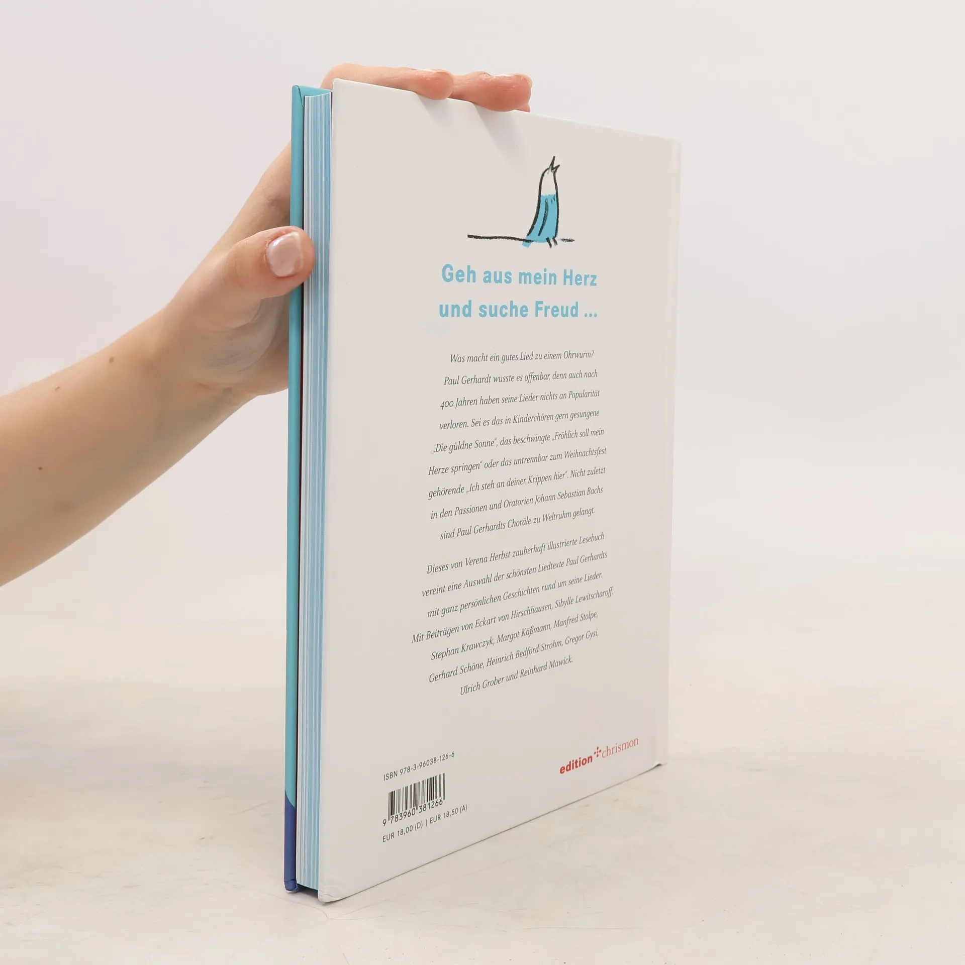 „Geh aus mein Herz und suche Freud in dieser lieben Sommerzeit ...“ – Was macht ein gutes Lied zu einem Ohrwurm? Paul Gerhardt wusste es offenbar, denn auch nach 400 Jahren haben seine Lieder nichts an Popularität verloren. Sei es das in Kinderchören gern gesungene „Die güldne Sonne“, das beschwingte „Fröhlich soll mein Herze springen“ oder das untrennbar zum Weihnachtsfest gehörende „Ich steh an deiner Krippen hier“. Auch in die Passionen und Oratorien Bachs haben Gerhardts Choräle Einzug gehalten. Dieses von Verena Herbst zauberhaft illustrierte Lesebuch vereint eine Auswahl der schönsten Liedtexte Paul Gerhardts sowie Wissenswertes rund um das Leben und Wirken des Liederdichters. Darüber hinaus erzählen bekannte Männer, Frauen, Katholiken, Protestanten, Politiker, Musiker, Schriftsteller, Menschen aus allen Ecken Deutschlands, Nicht-Gläubige, Schauspieler, Kirchenmenschen und mehr in diesem Lesebuch ihre ganz persönlichen Geschichten mit Paul Gerhardt. Mit Beiträgen von Eckart von Hirschhausen, Stephan Krawczyk, Manfred Stolpe, Gerhard Schöne, Gregor Gysi, Gotthold Schwarz u. v. a.
