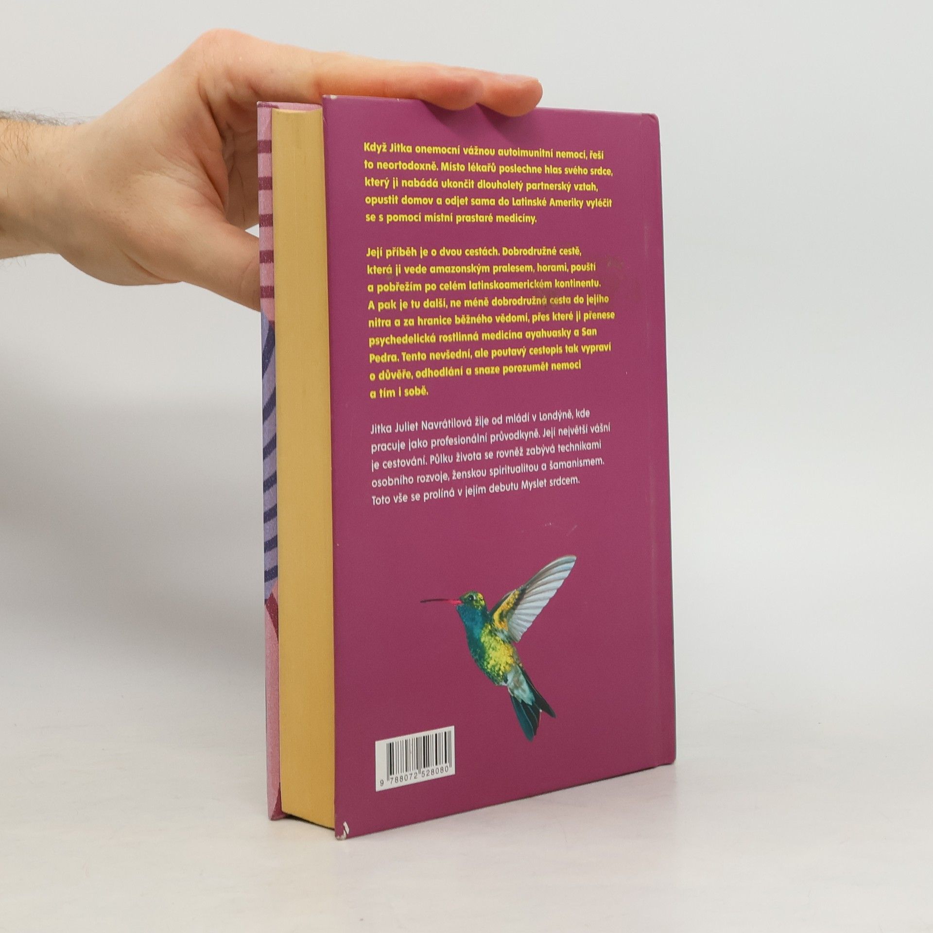 Když Jitka onemocní vážnou autoimunitní nemocí, řeší to neortodoxně. Místo lékařů poslechne hlas svého srdce, který ji nabádá ukončit dlouholetý partnerský vztah, opustit domov a odjet sama do Latinské Ameriky vyléčit se s pomocí místní prastaré medicíny. Její příběh je o dvou cestách. Dobrodružné cestě, která ji vede amazonským pralesem, horami, pouští a pobřežím po celém latinskoamerickém kontinentu. A pak je tu další, ne méně dobrodružná cesta do jejího nitra a za hranice běžného vědomí, přes které ji přenese psychedelická rostlinná medicína ayahuasky a San Pedra. Tento nevšední, ale poutavý cestopis tak vypraví o důvěře, odhodlání a snaze porozumět nemoci a tím i sobě.