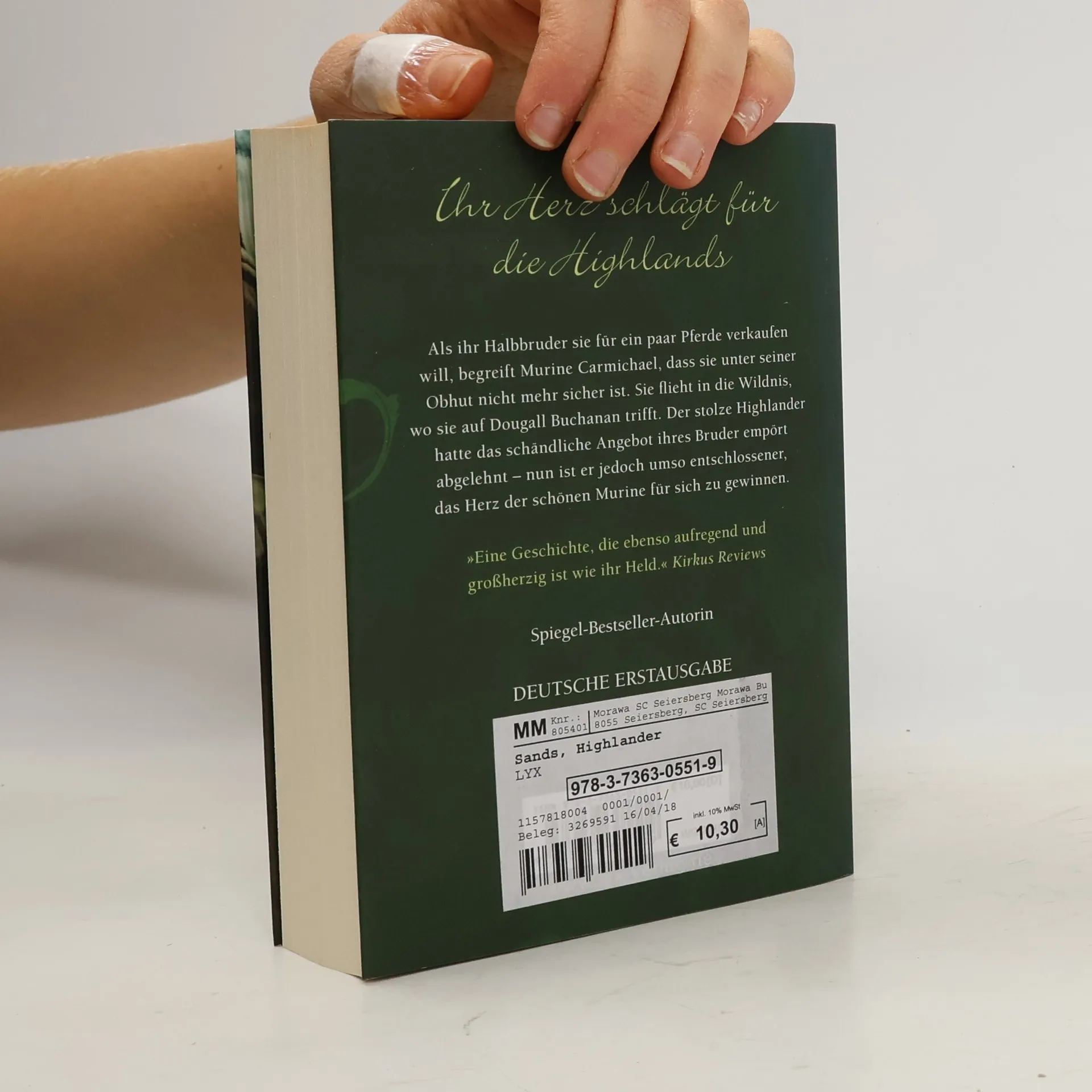 Ihr Herz schlägt für die Highlands Als ihr Halbbruder sie für ein paar Pferde verkaufen will, begreift Murine Carmichael, dass sie unter seiner Obhut nicht mehr sicher ist. Sie flieht in die Wildnis, wo sie auf Dougall Buchanan trifft. Der stolze Highlander hatte das schändliche Angebot ihres Bruder empört abgelehnt - nun ist er jedoch umso entschlossener, das Herz der schönen Murine für sich zu gewinnen. „Eine Geschichte, die ebenso aufregend und großherzig ist wie ihr Held.“ Kirkus Reviews