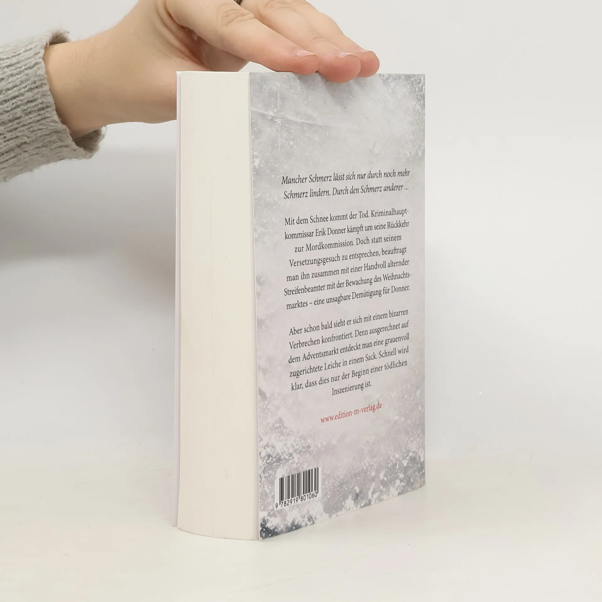 Mancher Schmerz lässt sich nur durch noch mehr Schmerz lindern. Durch den Schmerz anderer … Mit dem Schnee kommt der Tod. Kriminalhauptkommissar Erik Donner kämpft um seine Rückkehr zur Mordkommission. Doch statt seinem Versetzungsgesuch zu entsprechen, beauftragt man ihn zusammen mit einer Handvoll alternder Streifenbeamter mit der Bewachung des Weihnachtsmarktes – eine unsagbare Demütigung für Donner. Aber schon bald sieht er sich mit einem bizarren Verbrechen konfrontiert. Denn ausgerechnet auf dem Adventsmarkt entdeckt man eine grauenvoll zugerichtete Leiche in einem Sack. Schnell wird klar, dass dies nur der Beginn einer tödlichen Inszenierung ist. Neue Ausgabe: Die lieferbare Ausgabe von »Rache und roter Schnee« wurde neu gestaltet.