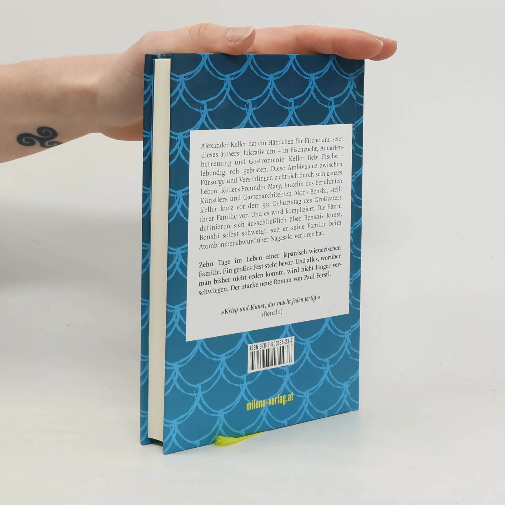 Alexander Keller hat ein Händchen für Fische und setzt dieses äußerst lukrativ um – in Fischzucht, Aquariumsbetreuung und Gastronomie. Keller liebt Fische – lebendig, roh, gebraten. Diese Ambivalenz zwischen Fürsorge und Verschlingen zieht sich durch sein ganzes Leben. Kellers Freundin Mary, Enkelin des berühmten Künstlers und Gartenarchitekten Akira Benshi, stellt Keller kurz vor dem 90. Geburtstag ihres Großvaters ihrer Familie vor. Und es wird familiär kompliziert: Die Eltern definieren sich ausschließlich über Benshis Kunst, Benshi selbst schweigt, seit er seine Familie beim Atombombenabwurf über Nagasaki verloren hat. Doch als er Keller Fisch essen sieht, bricht er sein Schweigen, macht Keller zu seinem Helfershelfer bei der Neugestaltung seines berühmten Gartens – und verursacht lediglich dessen Verwüstung. Mary selbst wird wieder in längst vergangen geglaubte Familienstrukturen hineingezogen – und mittendrin Keller, der als Benshis „neuer bester Freund“ weit über den Rand seiner vermeintlichen Toleranz und seines Gleichmuts gebracht wird.