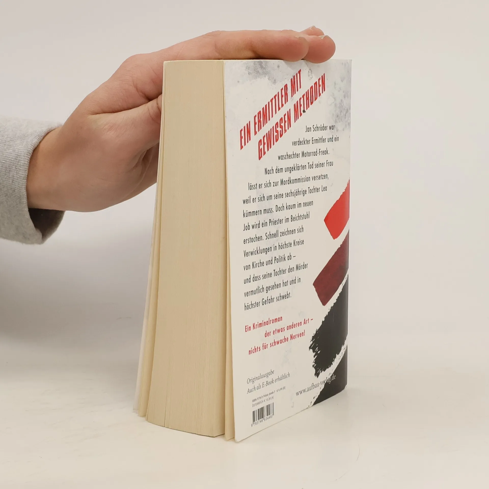 Ein Ermittler mit gewissen Methoden. Jan Schröder war verdeckter Ermittler und ein waschechter Motorrad-Freak. Nach dem ungeklärten Tod seiner Frau lässt er sich zur Mordkommission versetzen, weil er sich um seine sechsjährige Tochter Lea kümmern muss. Doch kaum im neuen Job wird ein Priester im Beichtstuhl erstochen. Schnell zeichnen sich Verwicklungen in höchste Kreise von Kirche und Politik ab – und dass seine Tochter den Mörder vermutlich gesehen hat und in höchster Gefahr schwebt. Ein Kriminalroman der etwas anderen Art – nichts für schwache Nerven!