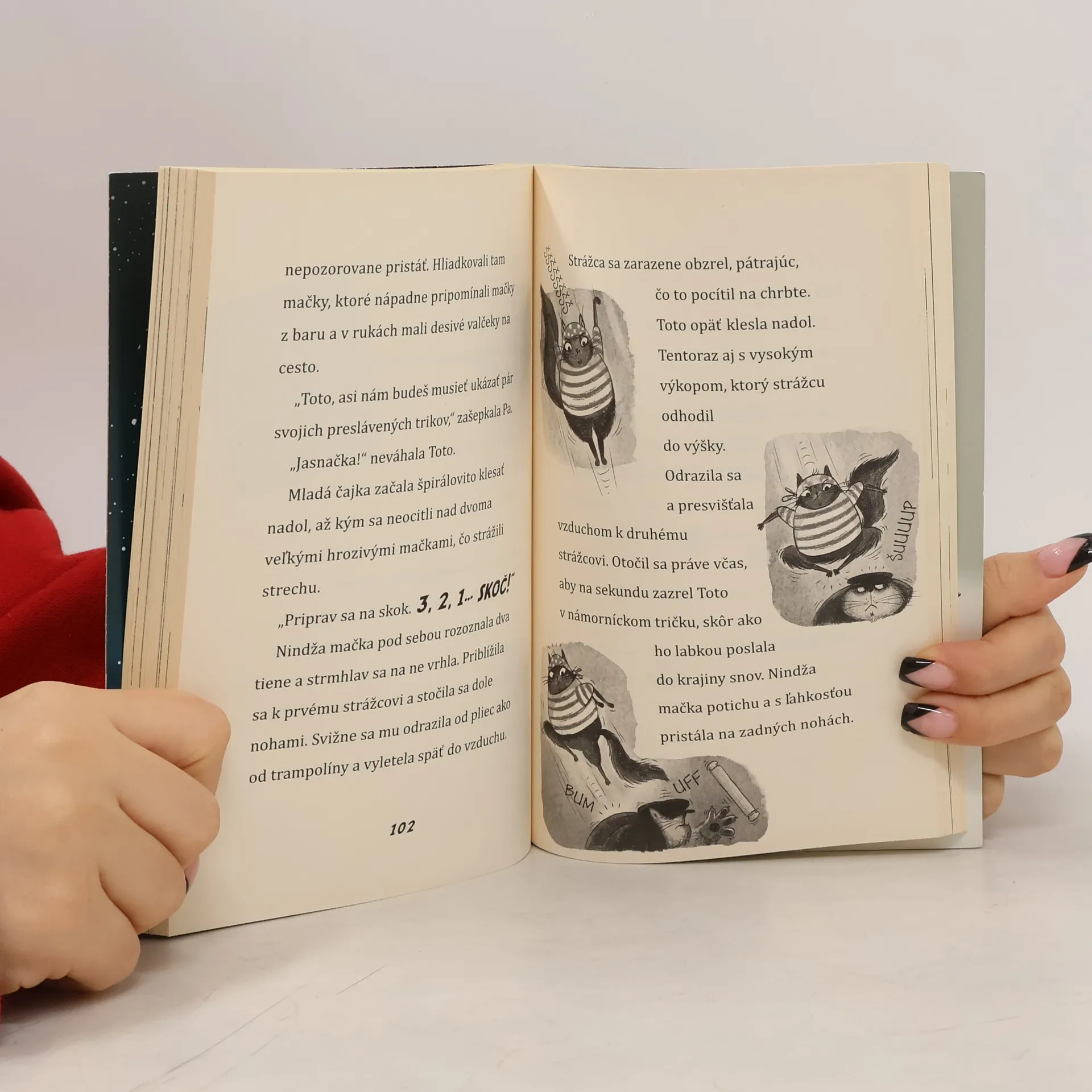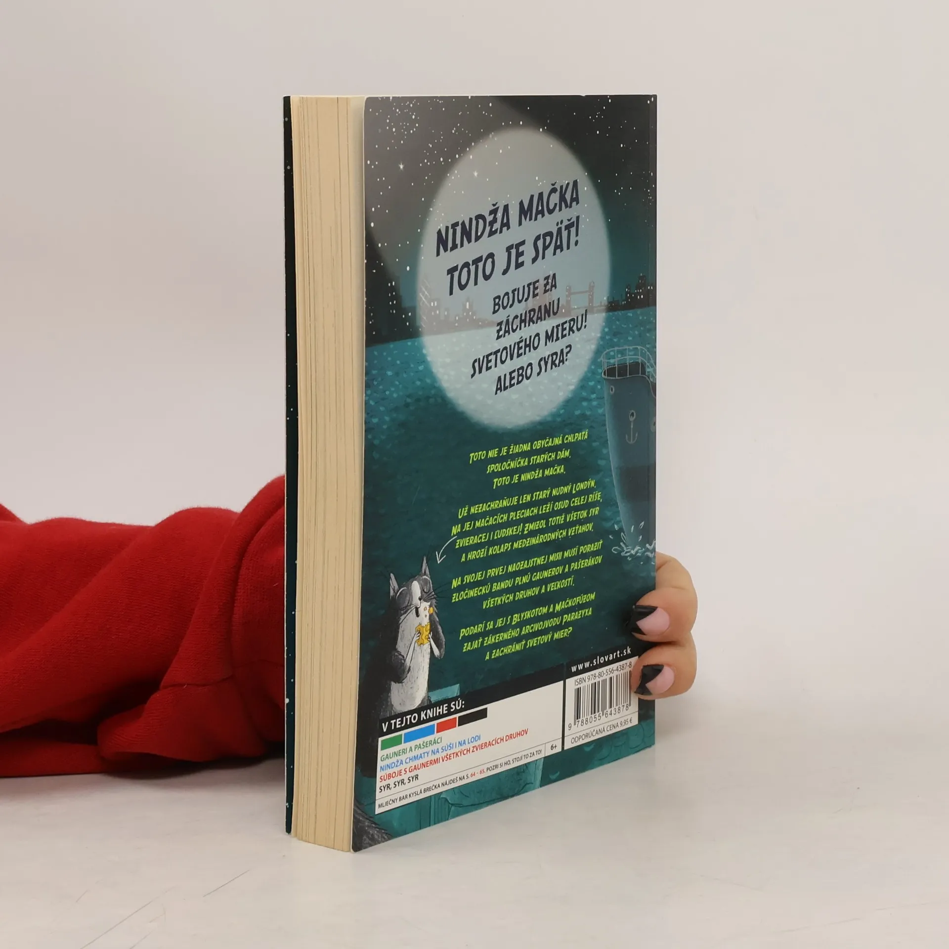 V druhej časti série o najmegasuper mačkách na svete už naša odvážna Toto nebude musieť zachrániť len obyčajný Londýn. Musí zachrániť svetový mier! Ako? No predsa záchranou ešte svetovejšieho syra. Toto totiž nie je žiadna obyčajná chlpatá spoločníčka starých dám. Nie je to mačka na spríjemnenie dlhých zimných večerov. Toto je nindža mačka. Síce takmer nič nevidí, zato má nadprirodzené nindžovské superschopnosti. Ako každý nindža, aj Toto musí chrániť slabších. Na svojej prvej naozaj misii musí poraziť zločineckú bandu plnú gaunerov a pašerákov všetkých druhov a veľkostí. Podarí sa jej to?