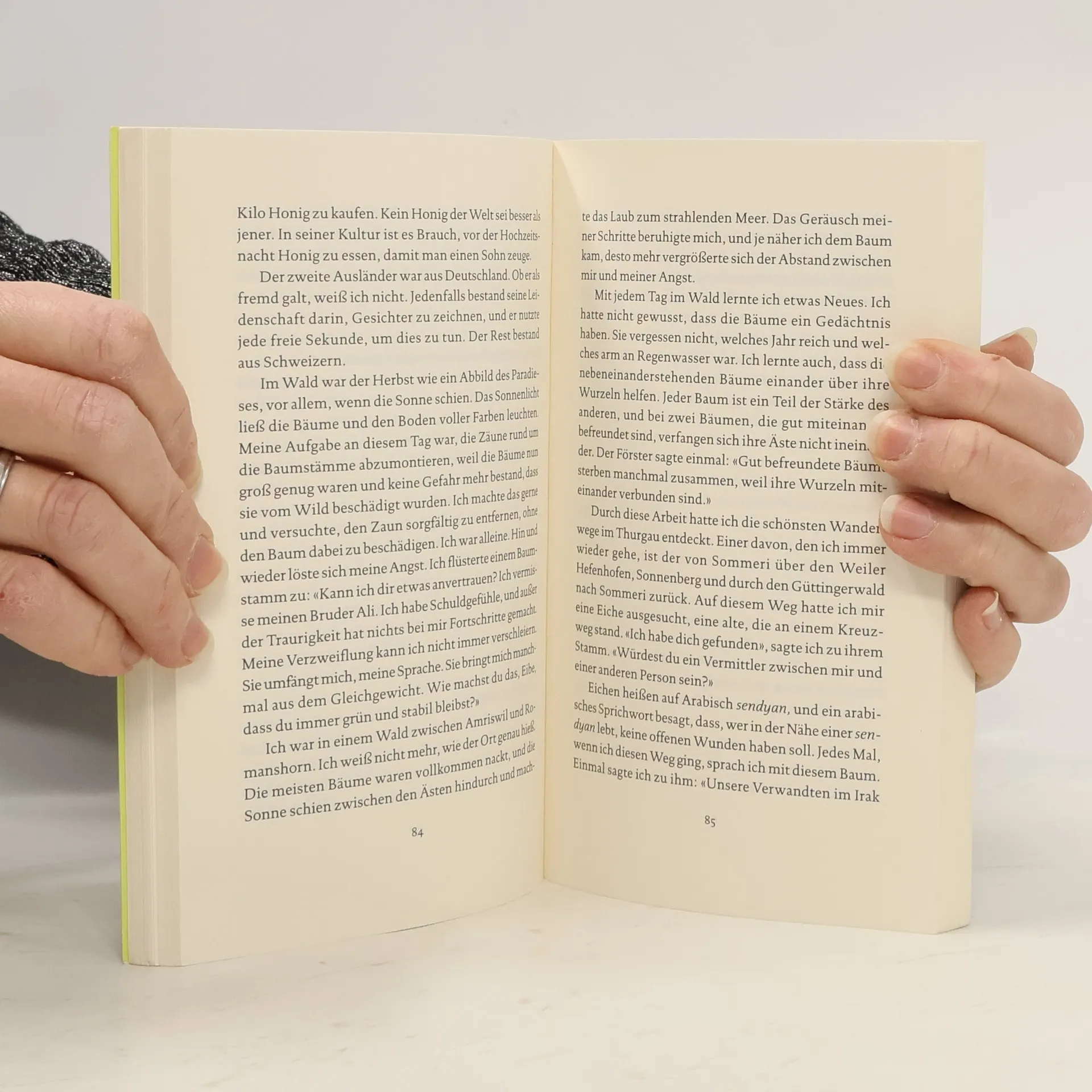 Usama wartet auf das Ergebnis seines Asylverfahrens und darauf, dass die Fremde etwas weniger fremd wird. Vor allem aber auf Nachricht von seinem Bruder, der in Bagdad spurlos verschwunden ist. Nur wenig erfährt er von seinen Verwandten, die sich im Irak auf die Suche nach seinem Bruder begeben. Die zähen Tage ohne Gewissheit nagen an seiner Kraft. Unerwartet findet Usama Trost in der Natur. Im Wald schafft er es, sich selbst zuzuhören, streut seine Worte über Blätter und Äste, bewundert die Kraft eines Stammes. Langsam lernt er, der Stille aus der Heimat das Geräusch des Waldes entgegenzusetzen, der auch in der Fremde seine Sprache spricht. In einer persönlichen Geschichte erzählt Usama al Shahmani von Bruchstücken einer Heimat, von Hoffnung und dem Wunsch nach Sicherheit.