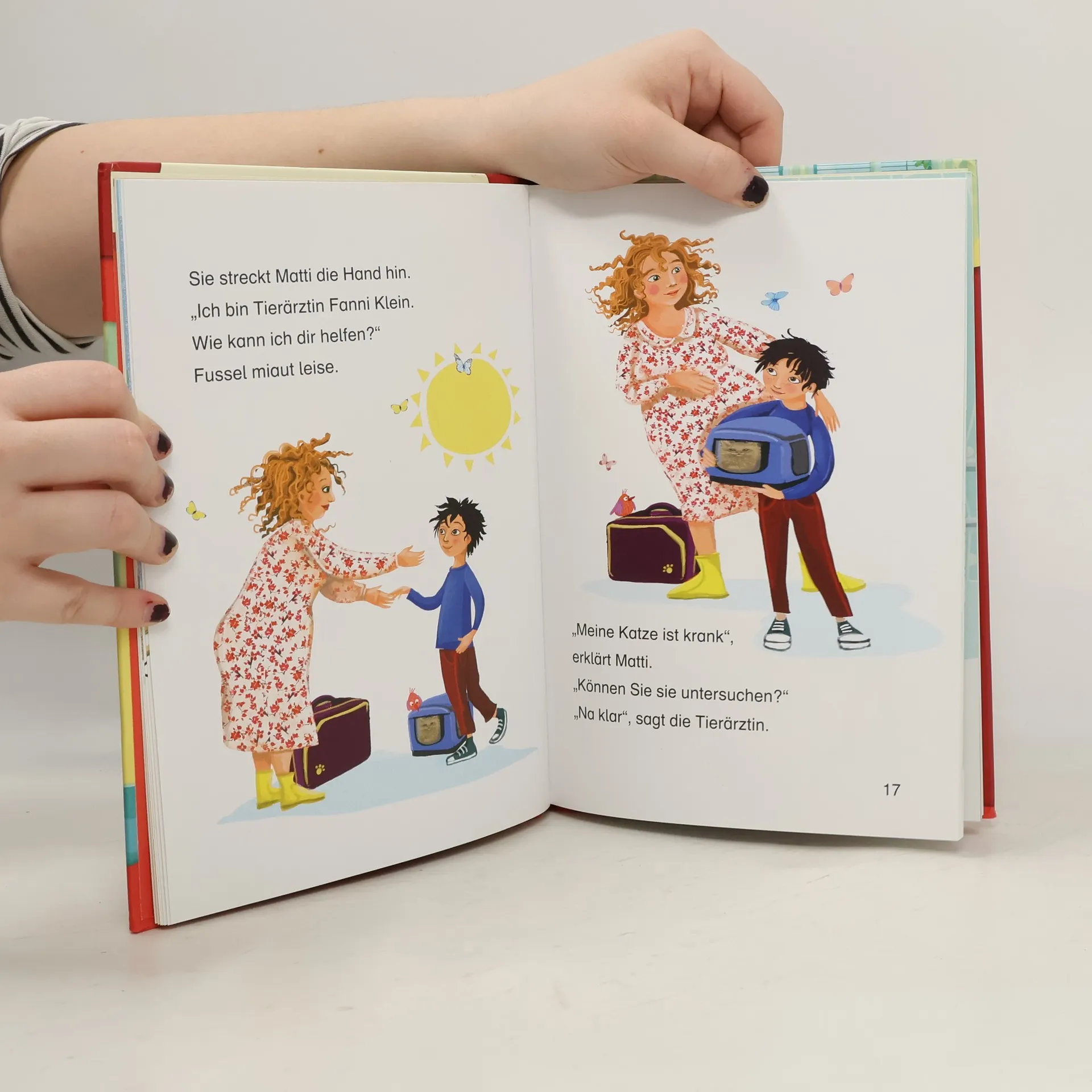 Das Buch ist bei deiner Buchhandlung vor Ort und bei vielen Online-Buchshops erhältlich! Matti macht sich Sorgen um seine Katze Fussel und bringt sie in die Tierarzt-Praxis. Dort darf er der Tierärztin sogar bei der Arbeit mit den Tieren helfen. Und am Ende weiß Matti nicht nur, dass seine Katze völlig gesund ist, er ist sich auch ganz sicher: Später will er unbedingt Tierarzt werden! Lesenlernen ganz einfach - mit den Erstlesebüchern der Reihe Leselöwen für die 1. Klasse. Die Kinderbuch-Bestseller unterstützen mit vielen Extras das Textverständnis von Kindern ab 6 Jahren. Schenken Sie Ihrem Kind das bewährte Erfolgskonzept zum Lesenlernen. Eine schöne Geschichte für alle Tier- und Katzenfans Seit über 45 Jahren lernen Kinder mit den Leselöwen erfolgreich lesen Über 29 Millionen verkaufte Exemplare - Die Nr. 1 in Deutschland, Österreich und der Schweiz Spannende Erstlesebücher, unverzichtbar zum Lesenlernen mit Spaß Von Lehrern mitentwickelt und empfohlen, von Grundschülern getestet Einfache, kurze Sätze in großer Fibelschrift unterstützen optimal den Leselern-Prozess Genau auf die Interessen und Lesefähigkeiten von Grundschülern ausgerichtet Mit Frage- und Übungsteil zur Förderung des Textverständnisses Inklusive spannendem „Schon gewusst“-Sachwissen Abwechslungsreiche Quizfragen auf Antolin steigern die Lesemotivation